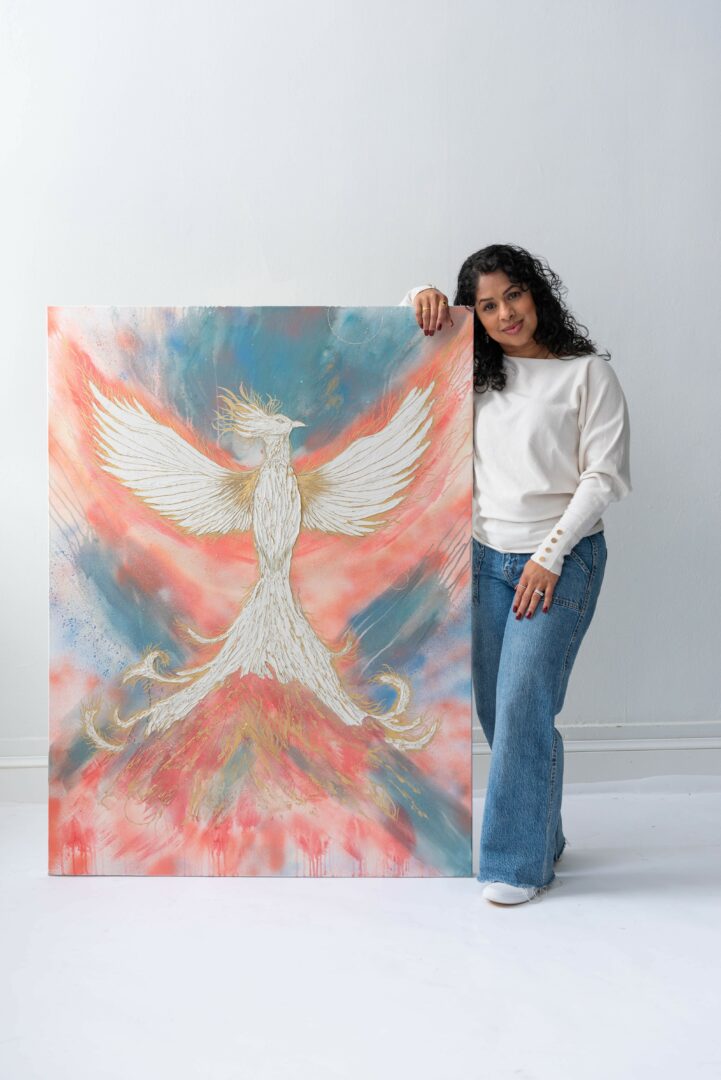 The most important first step of my art journey was defining what success meant to me. It is not the typical idea of a successful artist that most others might have. I want my work to be able to create empowerment and resilience on a wall within people’s homes – a sort of motivational speaker available to them at all times, reminding them of their power, and I would like to connect with my clients on a personal level. This is not to say my goal is to stay small, but more so that my goal is not lose the soul of my work in order to “make it big”. So I recommend anyone looking to be a successful artist, first define what that means to you. Every artist has their own idea of what they want out of their career. Once you know this, the most impactful thing is to find and invest in a mentor whose career is where you want yours to be 5 years from now. For me, this was a game changer. I knew how to paint but being trained as a clinical pharmacist meant I never took a business or marketing class. Being able to paint, is not what leads to having an art business. A mentor can help you think and act in the way you need to in order to get where they are, because they already did it.