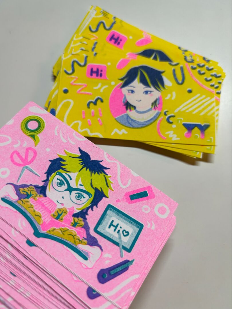 First, I like to start a few different directions at once. If one feels stuck, I can switch to another. Often, progress in one area sparks ideas for the others. For example, when I was making The Glasses Hunt, I struggled to find a way to add something simple and easy to share. While working on another thread, I suddenly realized that risograph printing, which is cheap and fast, was perfect for creating a zine to go with the pop-up book.