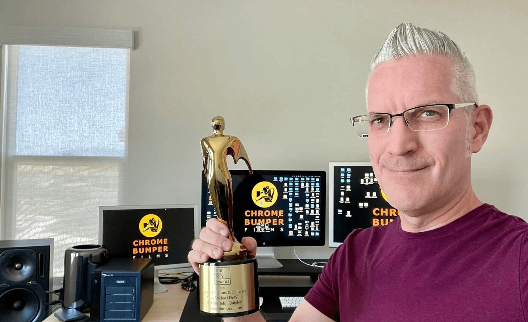 By this point, I was directing/producing massive 40 multi-camera productions, including Kid Rock stadium concerts with helicopter footage (because why not?). But then MTV did the unthinkable—it stopped playing music videos. So, like a camera on a tripod, I panned and pivoted. As advertising and documentaries adopted the fast-paced, music-driven storytelling style pioneered by MTV, transitioning into commercial and documentary work was a natural progression for myself and Chrome Bumper Films. Advertising and documentaries became my new playground. I won Best Director at the New York Film Festival for a documentary about Russian hockey legend Igor Larionov. My work for brands like General Motors, and Saint Joseph Mercy Health System—including projects featuring QB Matthew Stafford—snagged Emmys, MarCom Awards, Telly Awards. and even a Super Bowl ad. And somewhere in there, I directed over 60 award winning micro-documentaries on artists and painters because apparently, I can’t resist to help creatively showcase a talented artist.
