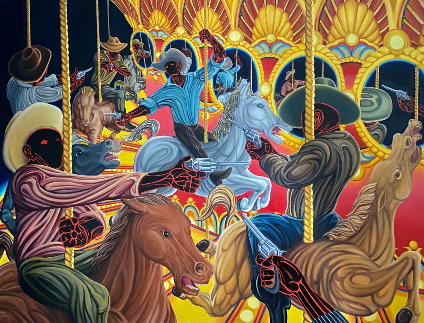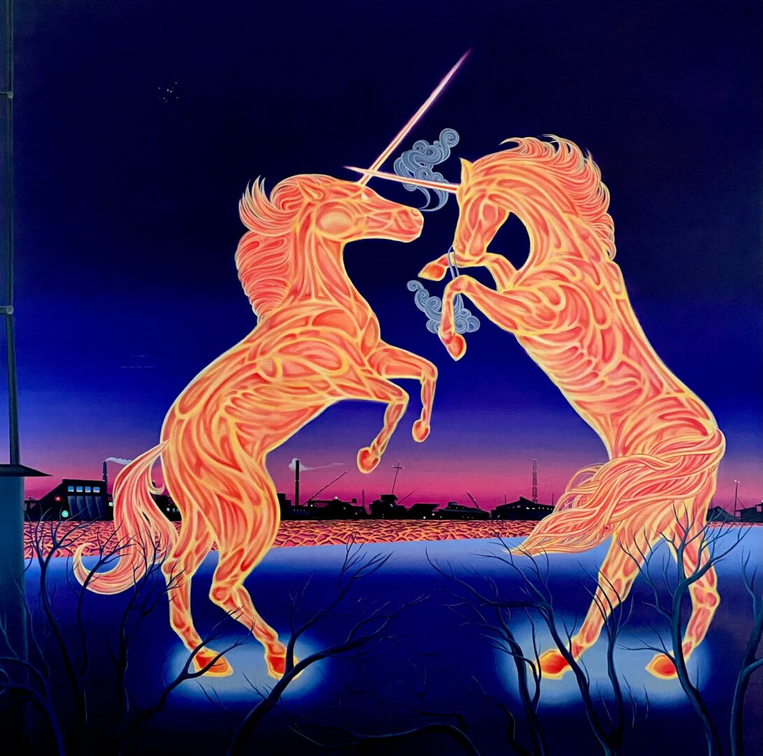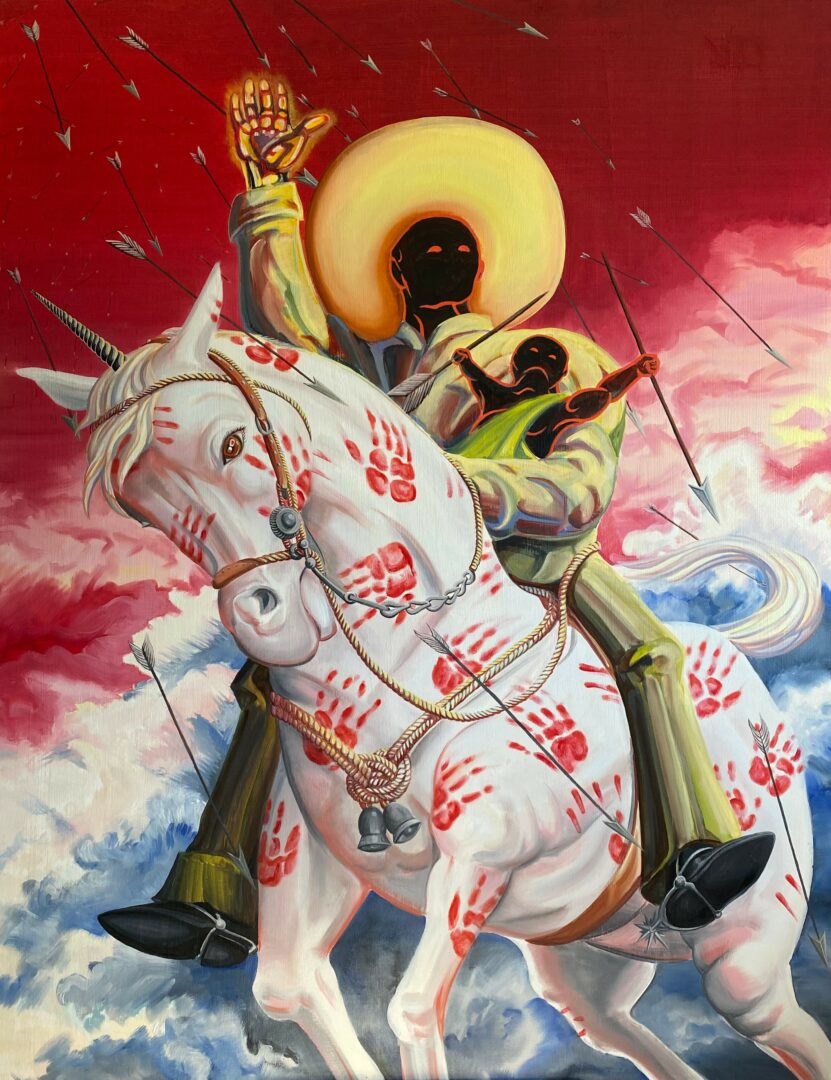 I am from the desert. My life has been a party, and a tragedy, and a joke. My painting isn’t so much a professional occupation; it functions more as a means of preserving my own mental clarity and sense of self-worth as everything around me slips into oblivion. It allows me to engage with the imaginative realm of cryptids, angels and phenomena while roaming the contemporary socio/economic/political landscape without devolving into despair. As a professional skill set, it makes me no money and is therefore, by definition, worthless. I do it to keep myself sane and it seems to work for that purpose and no other. I’m currently plotting an exhibition at Living Arts of Tulsa alongside Olivia Maday, entitled The Enchanted Dungeon that will run from Aug 1-23, focusing on the phantasmagoria of 21st century North American life.
