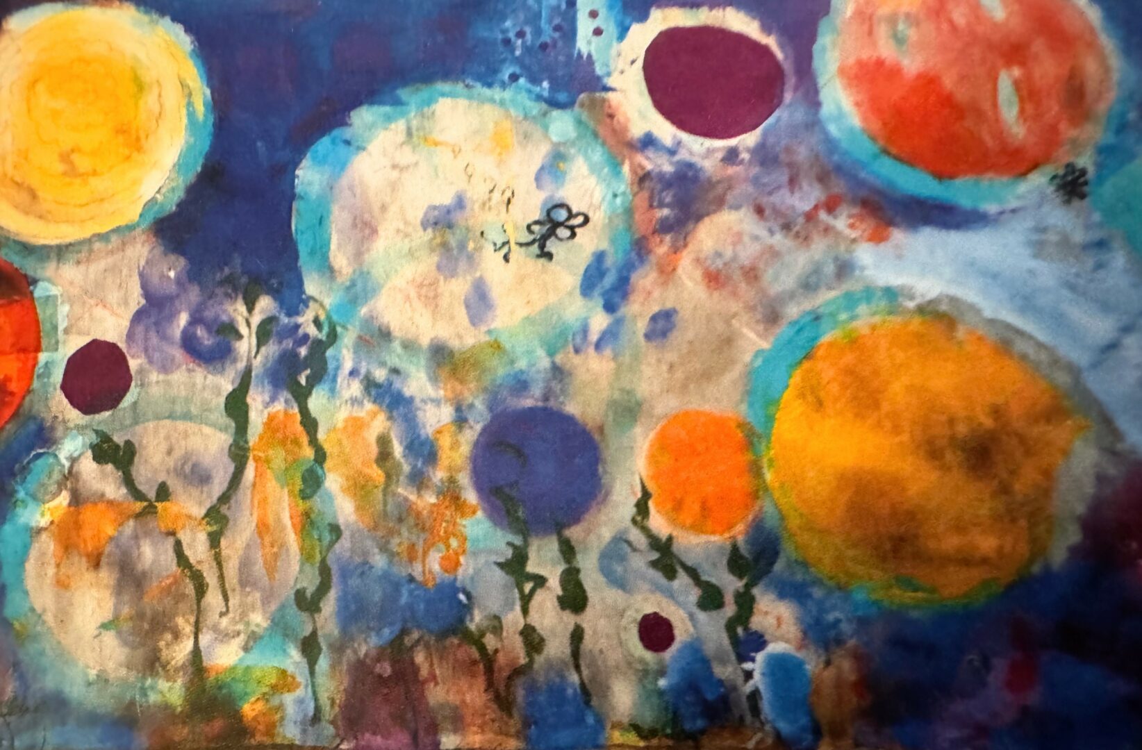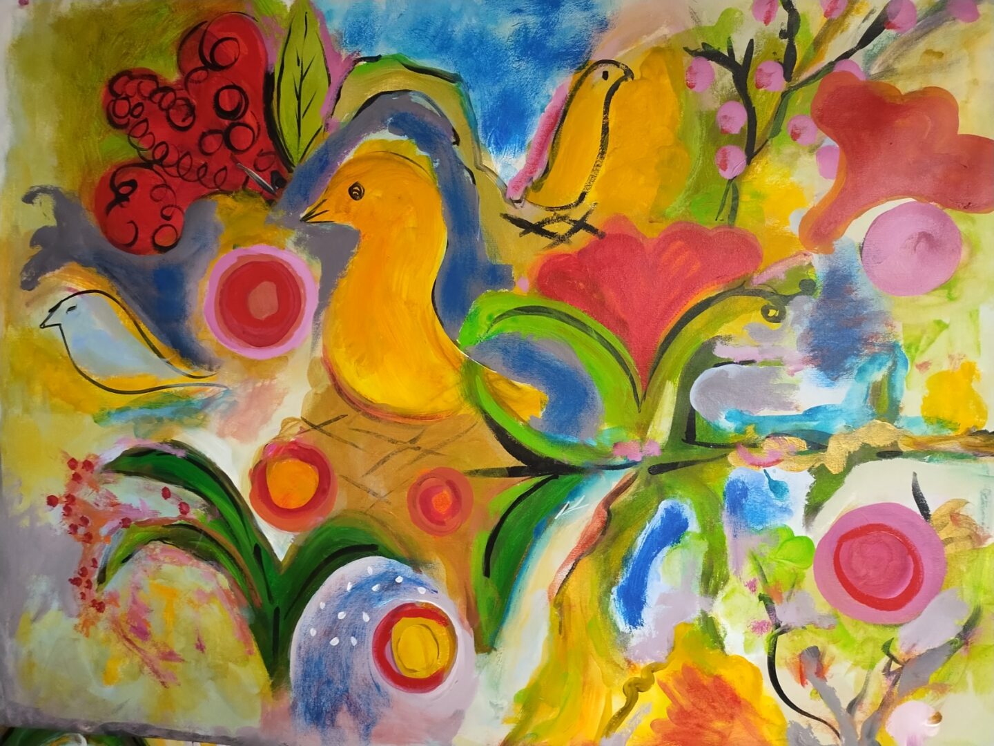 From all the practice in the studio, my wrist and arm and dancing whole body could feel how to scale up in size or down. I could translate a vertical painting of mine easily into a horizontal one and change the palette.