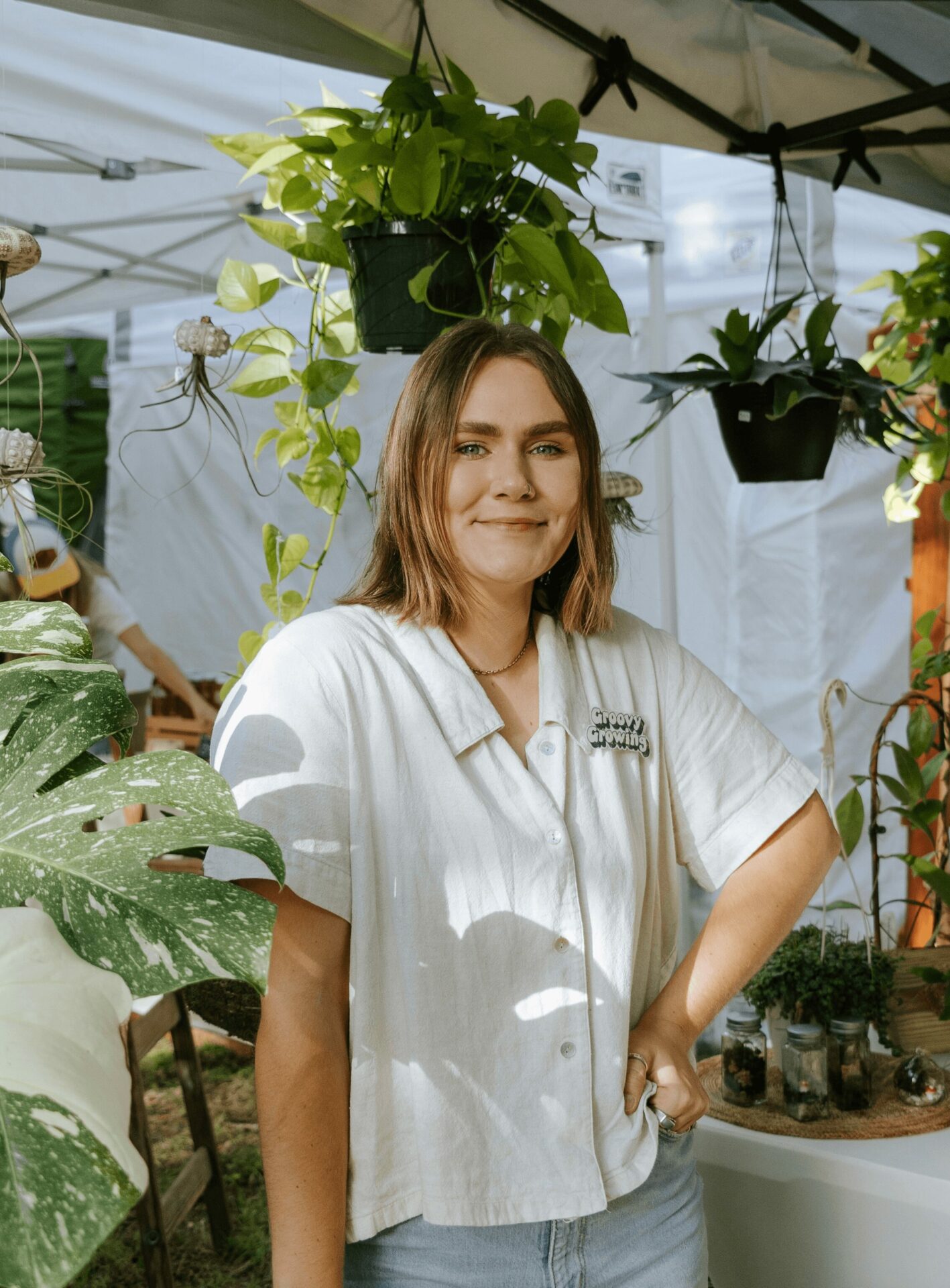I’m so grateful that I get to spend my days outside with plants! I grow a variety of greenery such as Philodendron, Monstera, Alocasia, Ferns, Cacti and so much more. In addition to potted plants, I create what I like to call, “living art”. I transform ordinary plants into statement pieces for the home. Building terrariums is one of my favorite ways to express my creativity. You can visit Groovy Growing at plant sales and farmers markets all across Florida as well as online on our website ~ groovygrowing.com!