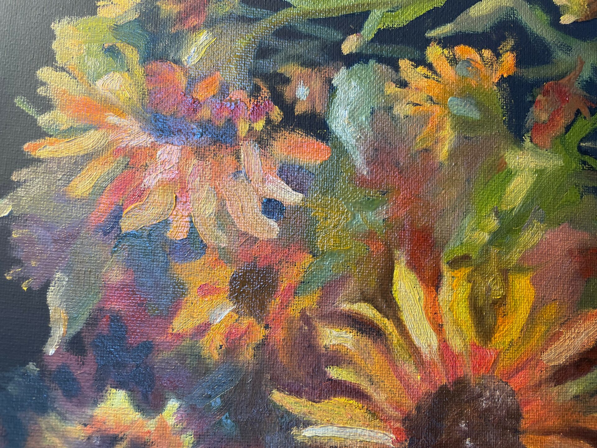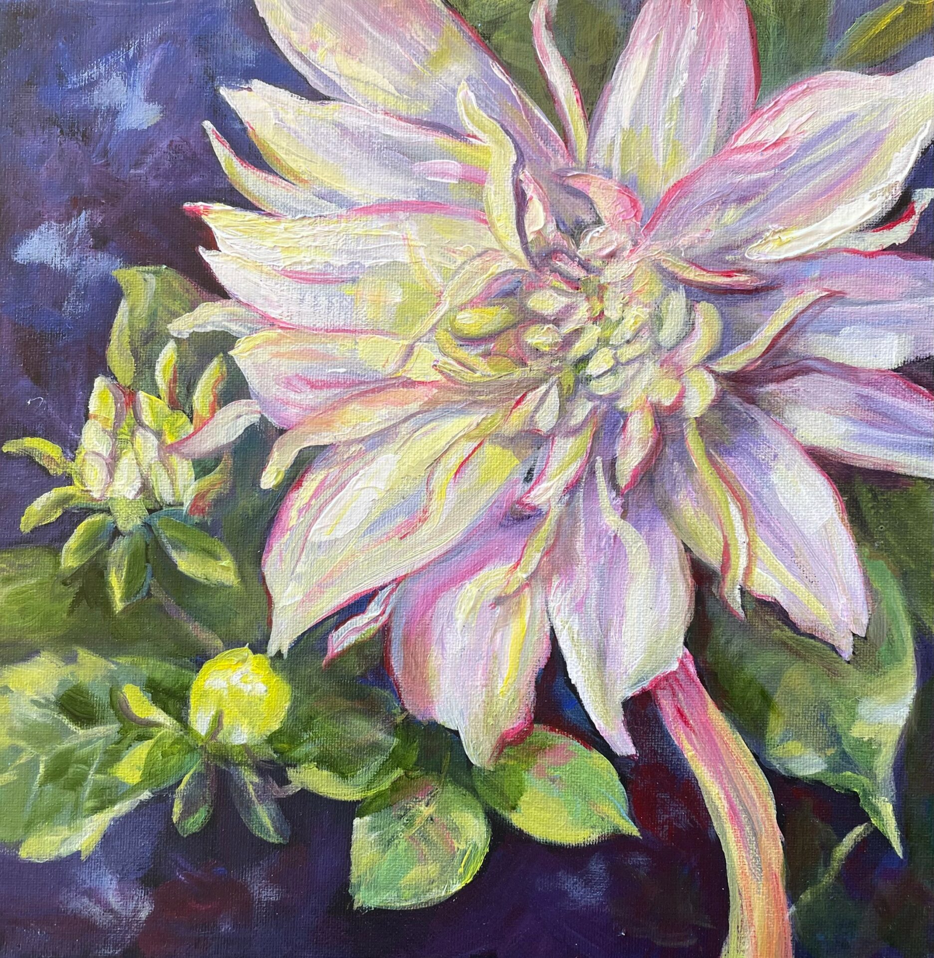 I am an artist. I have been painting since I was 20 (45 years). When I began painting I would oil paint from magazine pictures, greeting cards or others artworks. I worked full time as a paralegal, had a husband and eventually children. My time for painting was very limited. Once my family obligations lessened, I began to paint more frequently. I eventually began to paint my surroundings. I would take photographs of my flowers and vacations and paint from those. People really loved my flower paintings.
