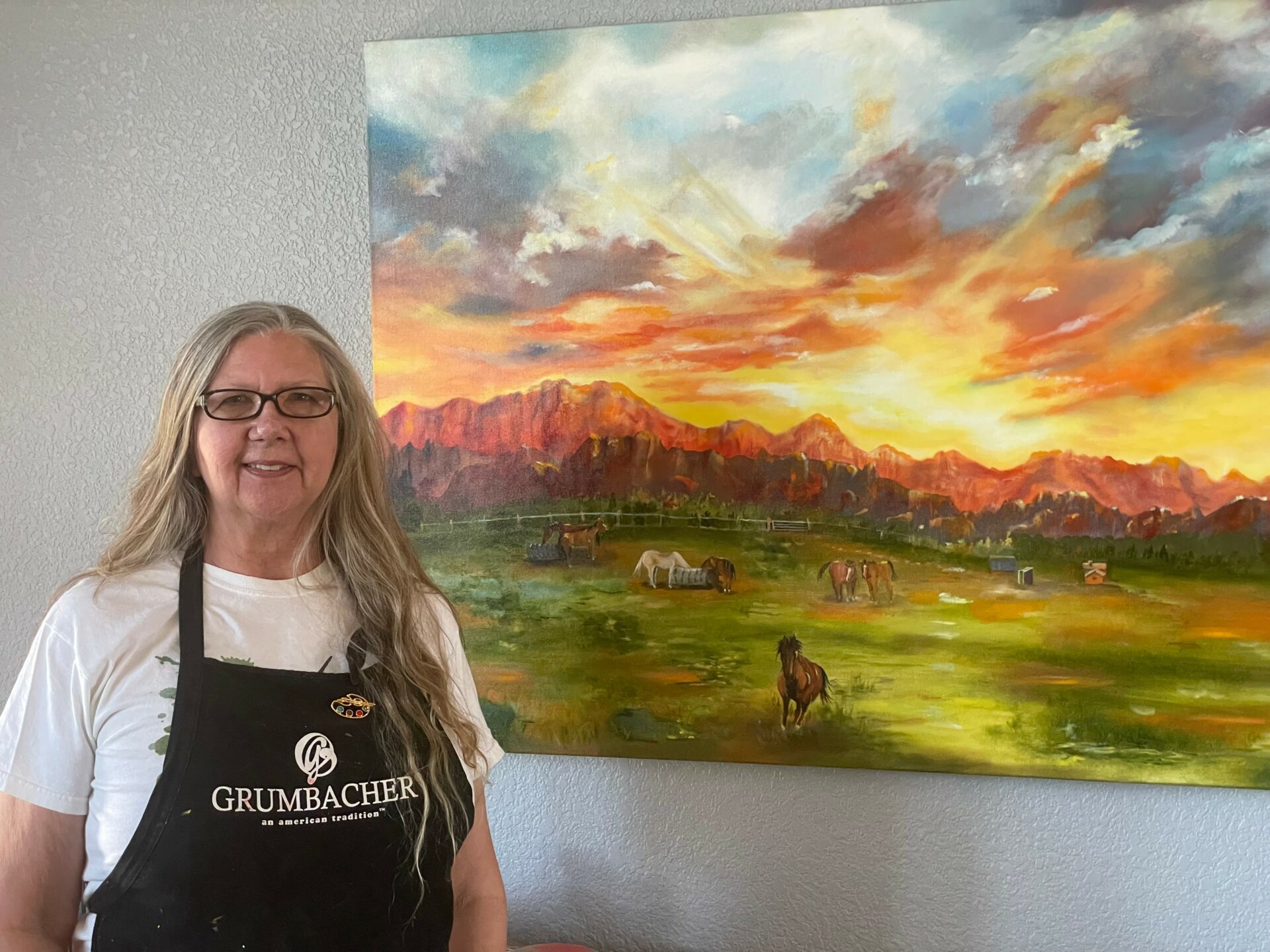 The big skies around me call out to me daily. I have been known to take 75 or more photos of the sun going down. I have so many images of horses and sunsets that I could paint a new painting a day for the rest of my life.