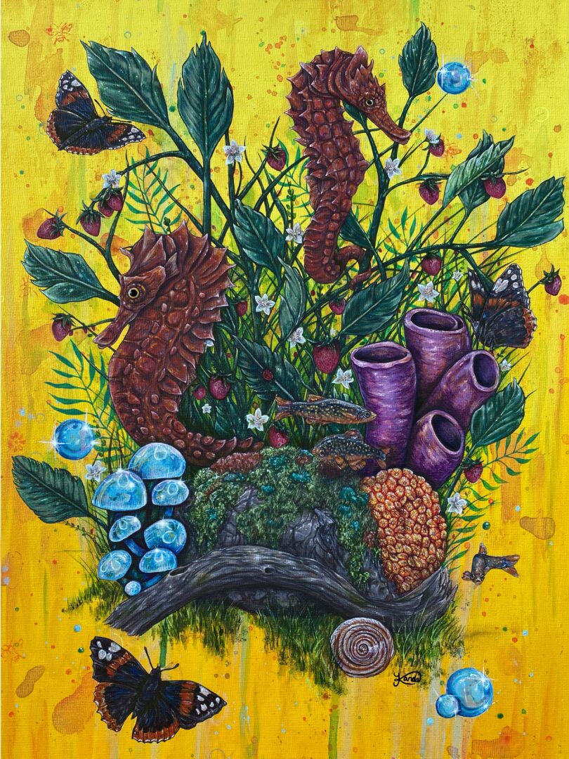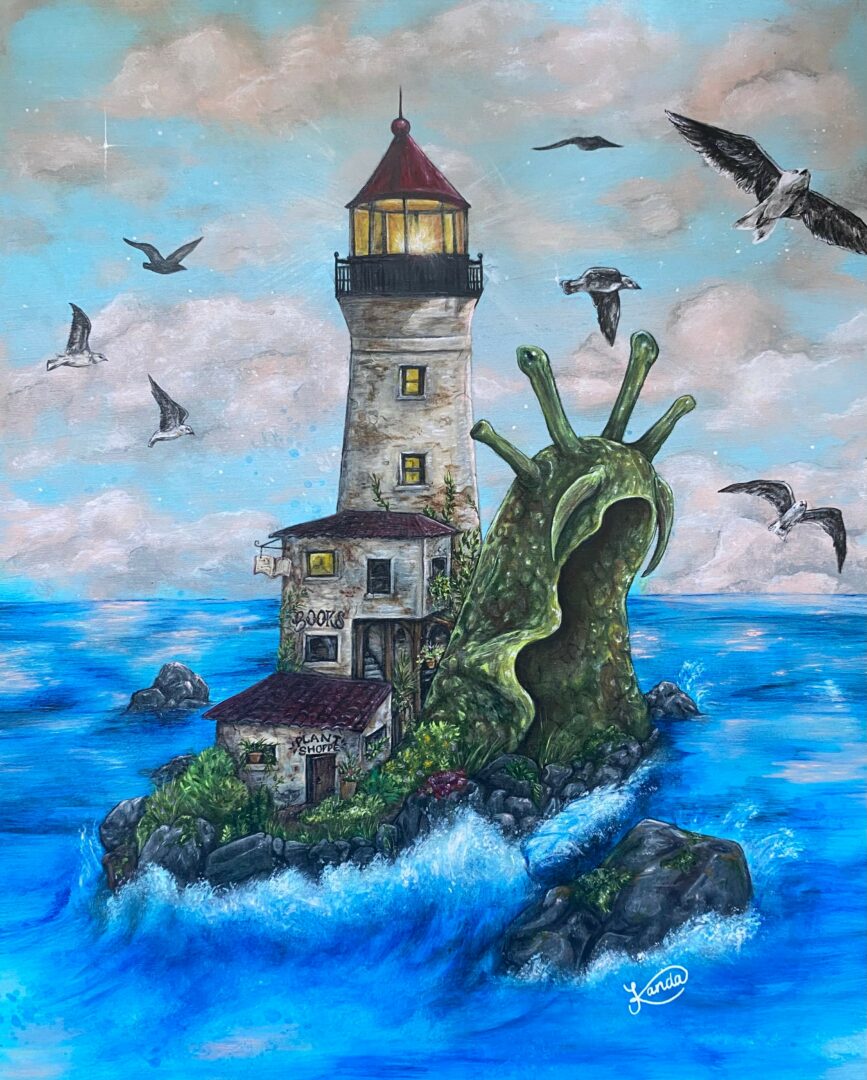 I am a freelance artist residing in West Michigan. I do a plethora of things under that ‘title’, I create works of art that I’ve shown in galleries all around Michigan, I’ve worked with customers internationally creating product labels, book covers, character development, pet portraiture, mural work for residential and business, and charity art requests for auctions. I’ve recently been involved with our local arts council, on the board as well as being a part of the group of ‘care-takers’ to the public art in the area. I’ve also recently started teaching art classes, adult and youth, in mediums such as acrylic paint, graphite, and paper mache. My biggest passion right now has been trying to find more mural opportunities! I’ve done a few and would love to keep working on a bigger scale!