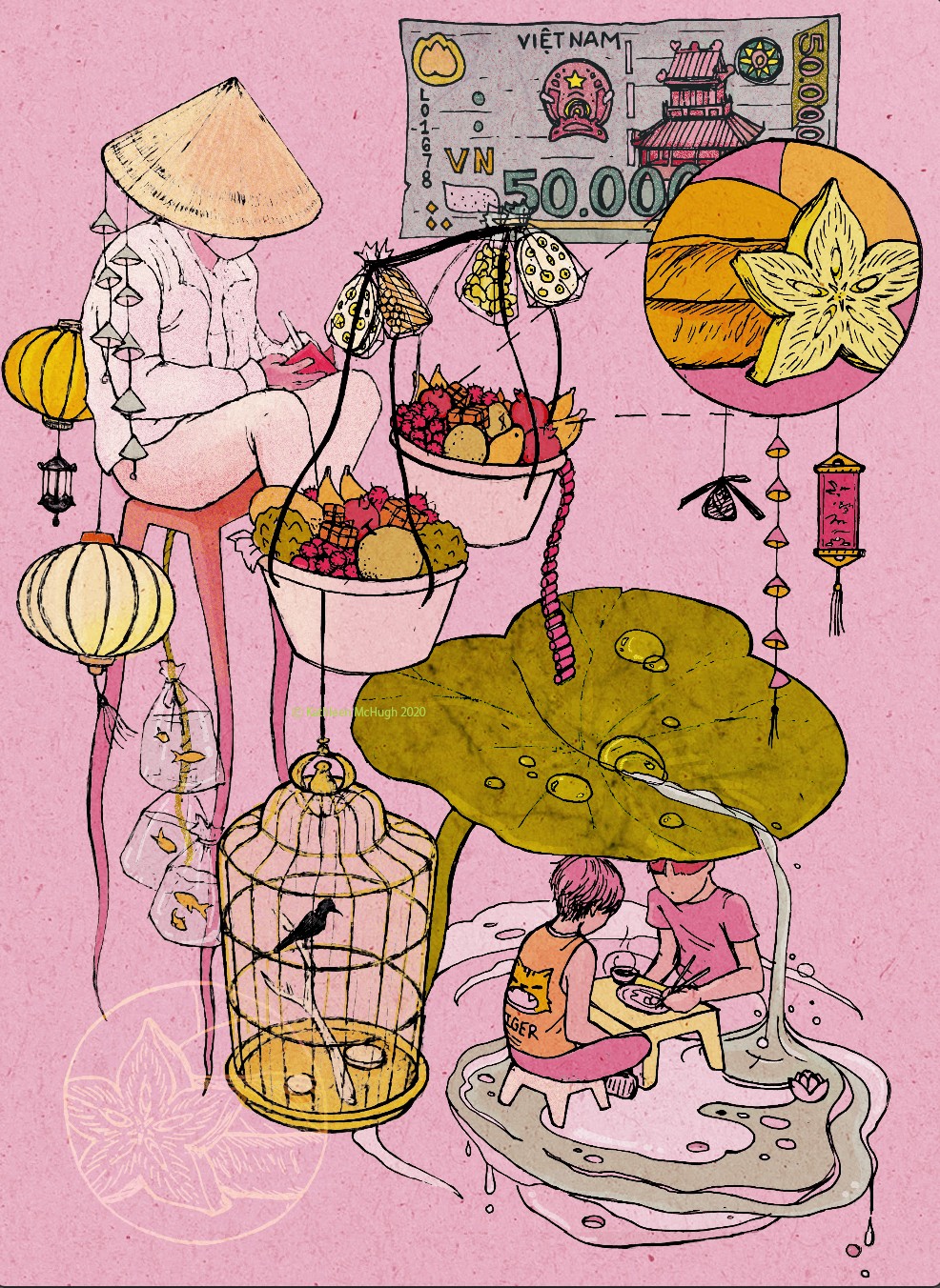 Kate McHugh is a visual artist specializing in narrative and editorial illustration. She received her BFA studying Illustration at the School of Visual Arts in 2020, and her work has been featured in print publications, murals, promotional material and more.
