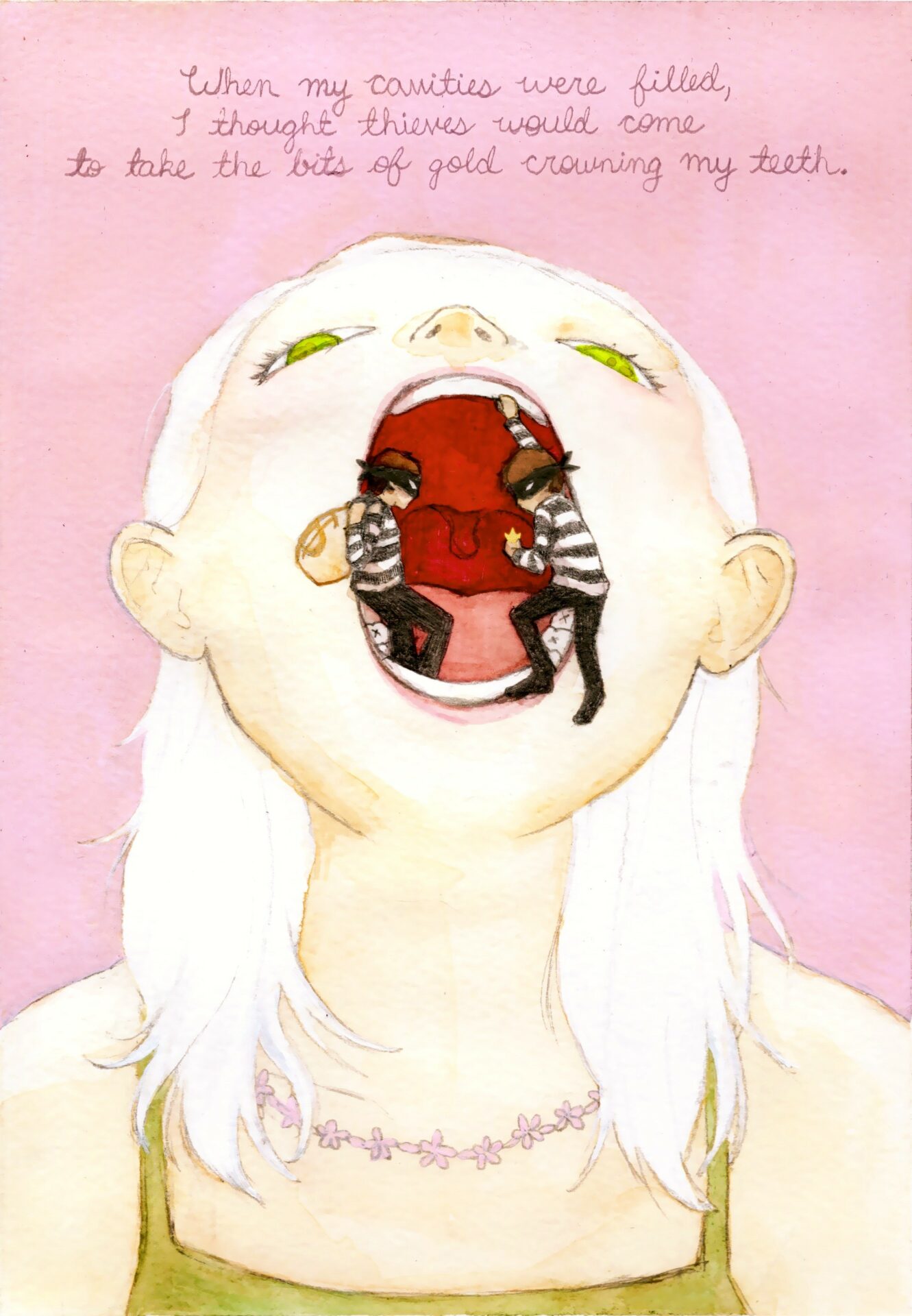 I think accepting that practice makes perfect and not giving up when you’re frustrated is the best thing you can do for your work. Building your own style by making collections of things you love – colors, compositions, themes, etc can help you develop your voice and be closer to yourself, and the more you do it the more defined it will become. Seeing the world as a scavenger and picking out things that define you can inform your work so much more than trying to be someone else. Art can be influenced by anything you find interesting.