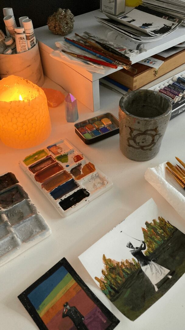 I have quite a few passions! I’m a self love and self worth focused life coach, and interior design consultant. I’m also a classically trained, internationally exhibiting fine artist! I’m a huge nerd about every aspect of my work and love talking psychology, design, and art! I have a real fascination with the feeling of home, what we choose to surround ourselves with and what we leave behind. In my mixed media paintings on found photographs I explore the complexities of time, memory, and nostalgia in an intuitive playful manner. I expand on that creative calling and passion for the power of aesthetics through my design and coaching work. Spreading the idea of “Living Artfully,” I aim to help others live more beautiful, creative, juicy lives by embracing the power of art, design, and artful living practices as self care.