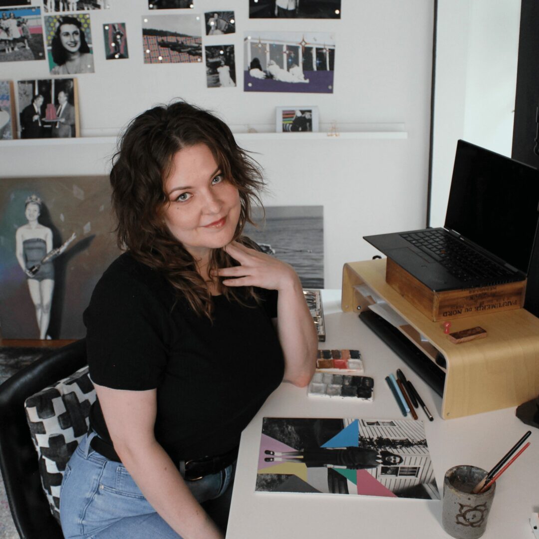 I have quite a few passions! I’m a self love and self worth focused life coach, and interior design consultant. I’m also a classically trained, internationally exhibiting fine artist! I’m a huge nerd about every aspect of my work and love talking psychology, design, and art! I have a real fascination with the feeling of home, what we choose to surround ourselves with and what we leave behind. In my mixed media paintings on found photographs I explore the complexities of time, memory, and nostalgia in an intuitive playful manner. I expand on that creative calling and passion for the power of aesthetics through my design and coaching work. Spreading the idea of “Living Artfully,” I aim to help others live more beautiful, creative, juicy lives by embracing the power of art, design, and artful living practices as self care.