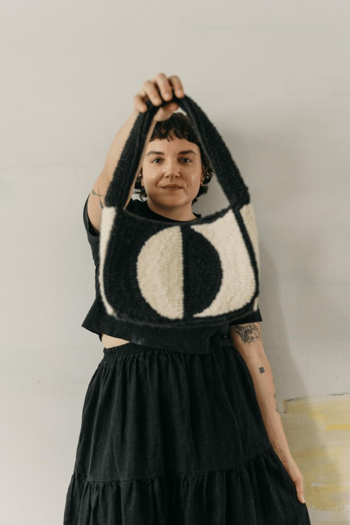 I am a fiber artist that uses the punch needle to create rugs, bags and house wares. I am passionate about creating hand made goods that are both practical and beautiful. I create custom made to order pieces. My work juxtaposes the texture of wool yarn with graphic and minimalist designs.