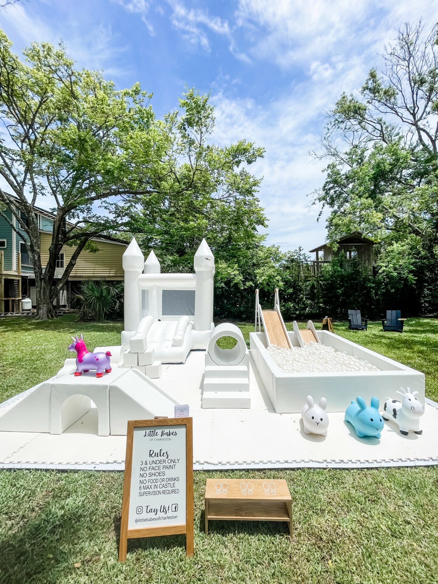 My husband and I started Little Babes of Charleston when we noticed the need of White Bounce houses in our area, specifically for our daughters first birthday party. Now almost two years later, we primarily focus on our luxury soft play and ball pit rentals, being the first (and for now, the only) provider in the Charleston area! We are also looking for more products to add to our lineup of luxury kids party rentals, so be sure to keep an eye out for what’s to come!