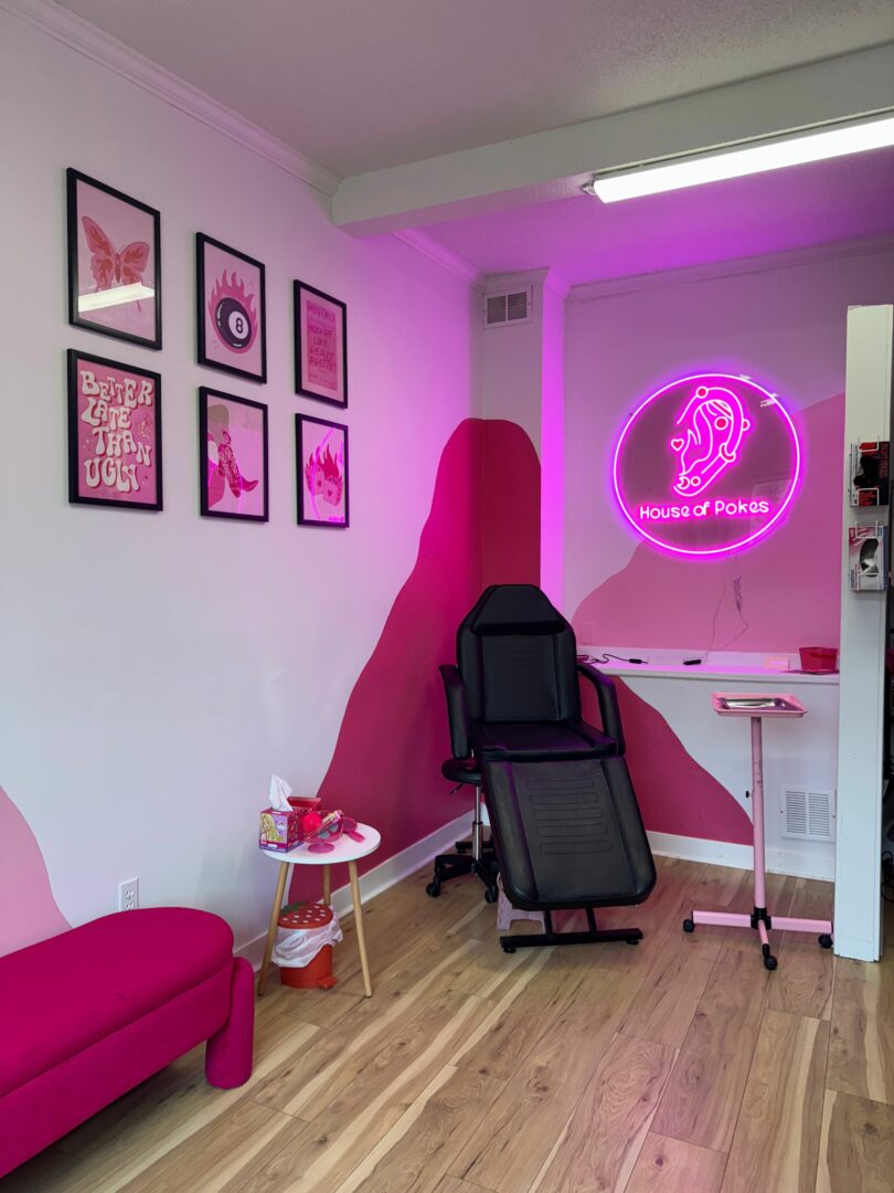 House of Pokes is more than a piercing studio it’s a safe space. I created a woman-owned, women-led shop with a touch of nostalgia, disco energy, major pink vibes, and the kind of confidence boosting atmosphere where people of all ages (especially women and kids) feel celebrated, not judged. Piercings are personal, and I want every person who walks through our doors to feel comfortable, respected, and excited whether it’s their first piercing or their twentieth.