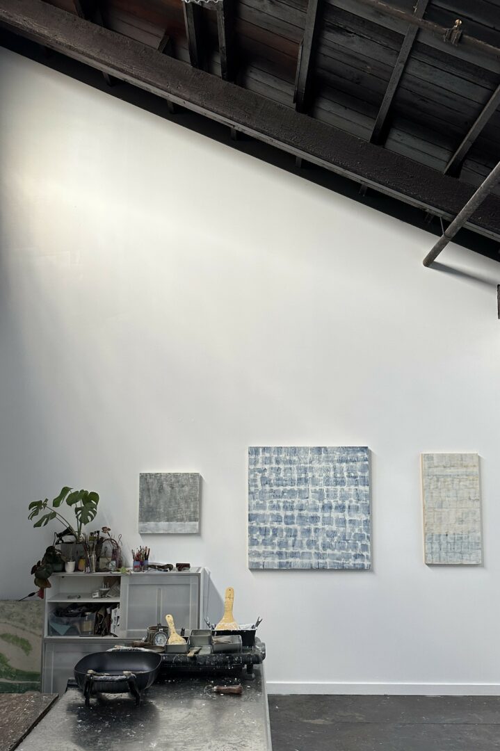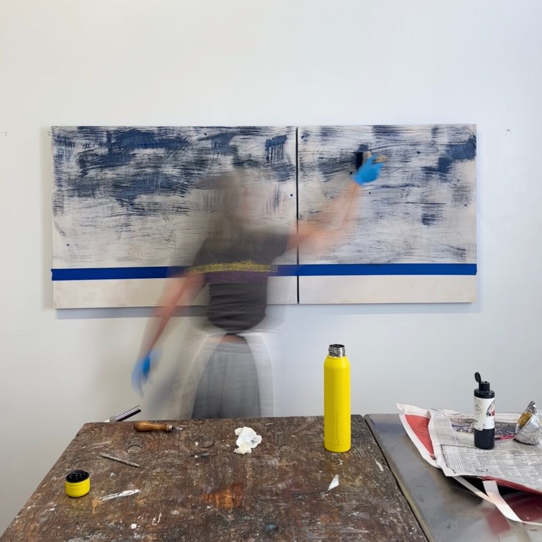 I’m mostly a painter, but with a background as a jeweler and midwife I approach my work from a craft-based, holistic perspective. My primary medium is encaustic, which is a combination of beeswax and tree resin. The material is heated, applied in a liquid state, cooled, then fused in multiple layers with a torch or heat gun. It’s a technique that was originally used in creative preservation – think 1st century mummy portraits and ancient Greek boat hulls. Encaustic is not often seen in contemporary art, but I‘m enchanted by the sculptural quality, translucent possibilities, and delicious smell of the medium. My work explores themes of time and connection, and I often pay attention to the places we intersect with nature.