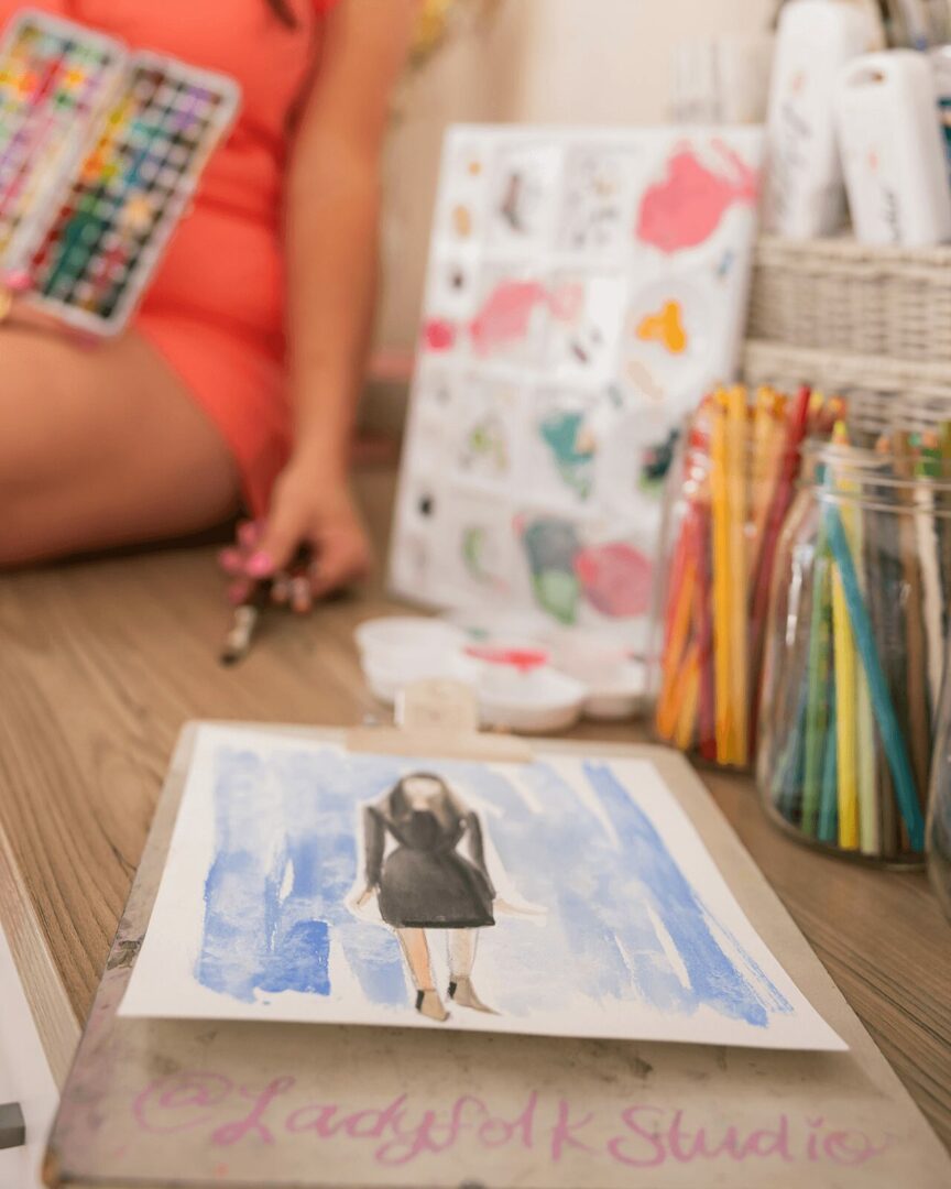 Ladyfolk Studio is the creation of Laguna Beach artist Kimberly Heimbach, a LCAD graduate and former adjunct professor. You can find Kim creating beautiful watercolor art at her studio in the heart of downtown Laguna Beach or at events for luxury fashion brands including Fendi, Gucci Beauty and LoveShack Fancy to name a few. Kim’s unique style and whimsical illustrations are in high demand to entertain guests at all kinds of events. In fact her wedding live guests paintings are so popular she is booked through next summer. Kim will be offering free monthly community events as well as Watercolor and Wine workshops where you are invited to join her at the studio and explore your own creativity. Kim hopes to inspire the next generation of female (ladyfolk) artists.