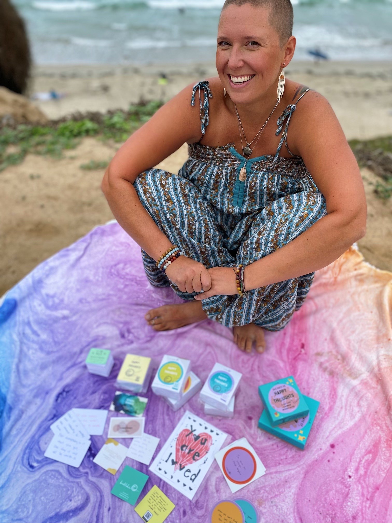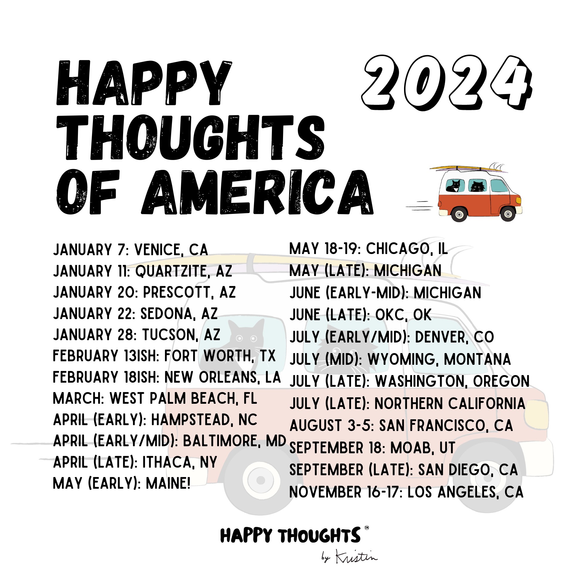 In the past 12 months, these Happy Thoughts have gone wild! We’ve gone from a budding product into a Happy Thought brand. So much has changed since last year; I learned how much I didn’t know and once I learned what I needed, the information showed up. I figured out printing, trademarks, copyrights, etc., and was able to create a product I’d dreamt of. I have no business background and knew nothing about printing before I started making a print product. There is nothing that has confirmed my belief in Happy Thoughts more than how they are showing up in this business. I’m now traveling across the country on the Happy Thoughts of America Tour. I’m on Season 2 of the Happy Thoughts Podcast, am running groups called Happy Hangs, and am figuring out the logistics to make my next order of Happy Thoughts on the road.