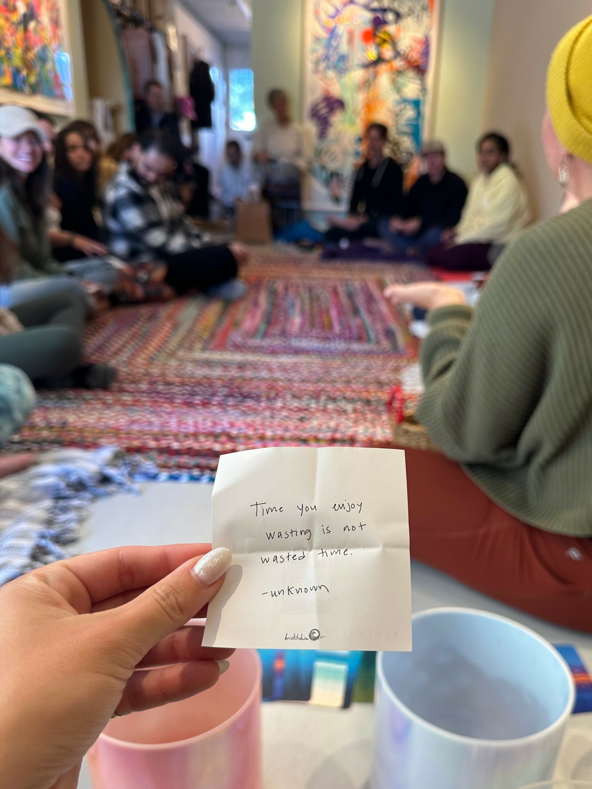 Hmm what do I do… it is shifting all the time, so I think what I do right now is dream big. I started a business back in August of ’21 and didn’t know what I was selling. While figuring it out, I brought handwritten Happy Thoughts with me wherever I’d sell. Happy Thoughts are thoughts I’ve been writing down for a over a decade to help me feel ok being me. It was an utter shock when handing out these Happy Thoughts turned into the business themselves.