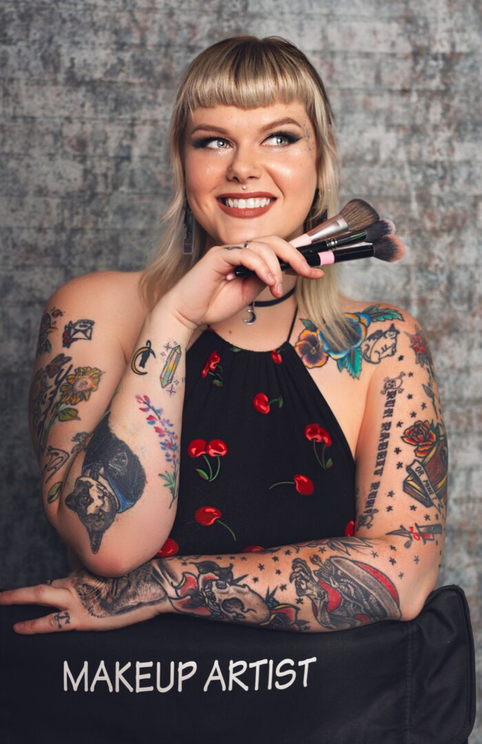 I grew up in a very small gold rush town in Northern California. Jobs were waitressing, housekeeping or manual labor. When I was a kid, being different was frowned upon, and being a bigger girl in the early 2000’s was even more so. When I turned 18, I moved to Napa Valley, and started getting tattoos as a way to help me feel more physically confident, and now I’m covered! For me, helping clients get their makeup done and feel absolutely beautiful is the best feeling in the world, helping them realize their inner confidence and self worth, whatever age they are. We all deserve to feel beautiful and worthy of ourselves and our bodies.