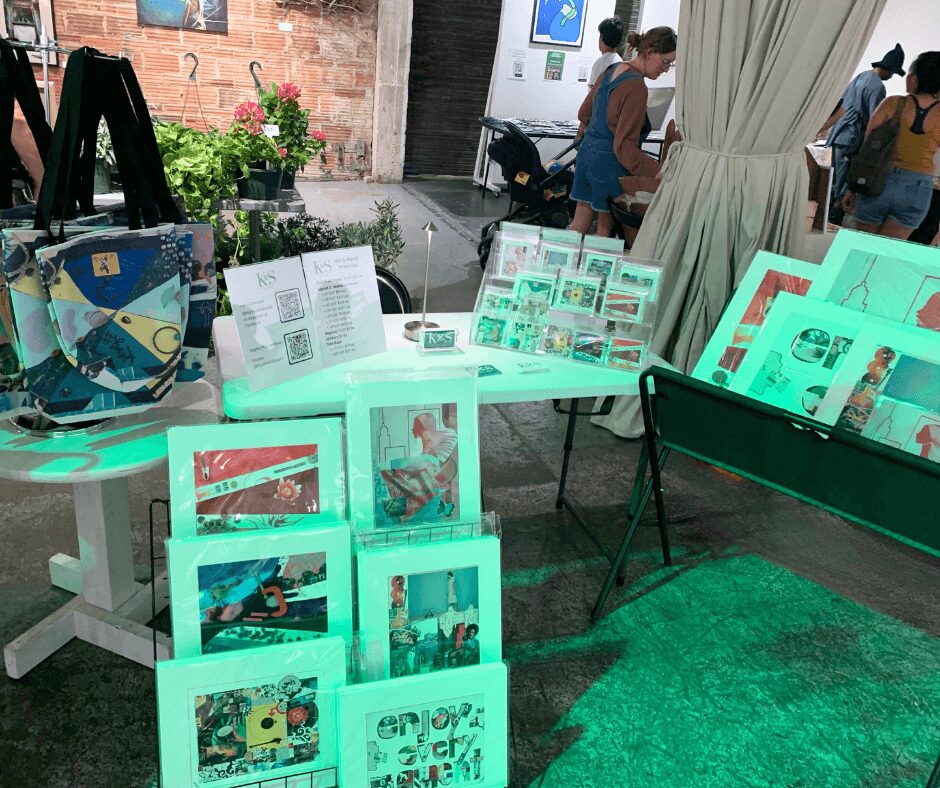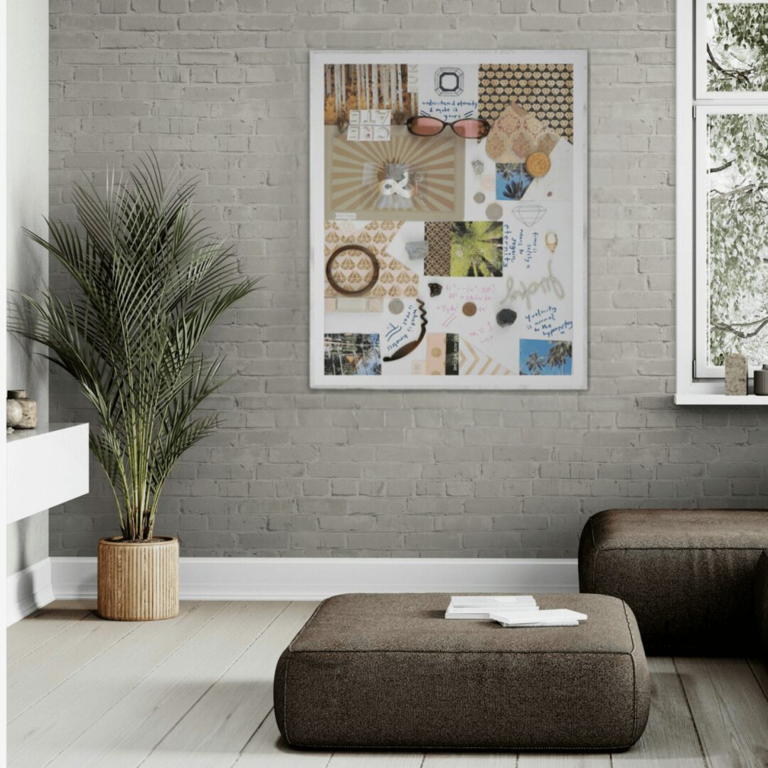 This dovetails nicely with my background as a certified Meditation Teacher and Therapeutic Art Life Coach, as these practices also enhance creativity, whether it’s designing a life you love or rejuvenating your mind, body, and spirit in deeper ways. Individuals and companies also call on me for custom collages, art, and workshops. I love collaborating on these one–of–a–kind pieces and seeing how much joy and resonance they create. People also find a lot of joy in my unique art merch as I have a fresh take on how art can intersect with everyday objects, and elevate these things with fun images and ideas to ponder.