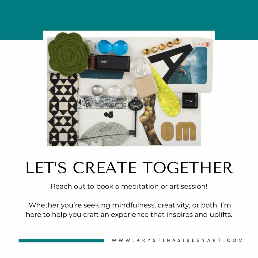 I am a multidisciplinary creative who explores the intersection of art, science, nature, and consciousness. In my collages and assemblages, you’ll find treasures from my worldwide travels, nature hikes, upcycled elements, and meditation background. Some of my artworks can be hung in any direction, and I love having people find unique insights at different angles.