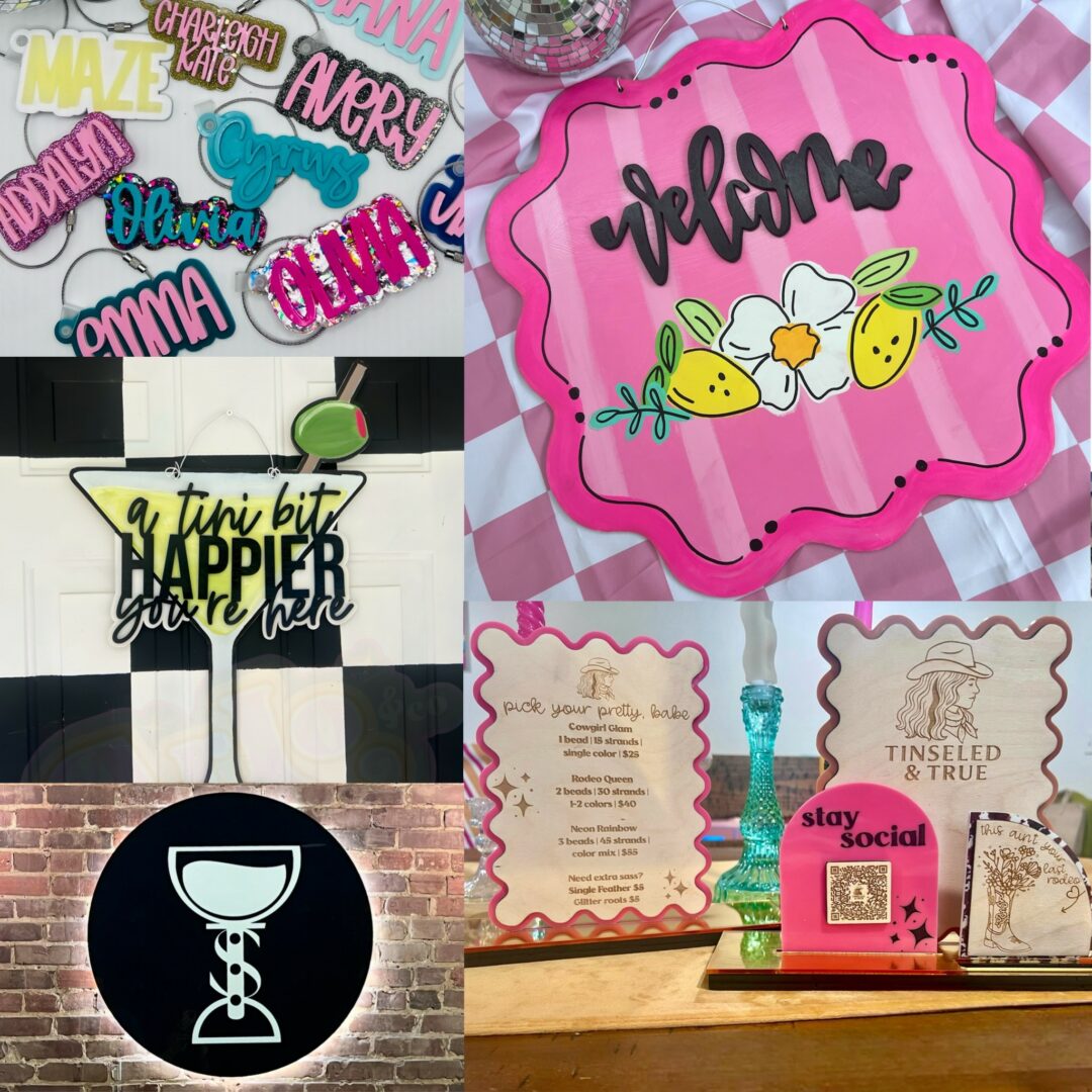If you find yourself looking for something creative and one-of-a-kind? Let me design and make it for you! From custom door hangers, gifts, and signage to laser-engraved acrylic and wood pieces, I love to bring ideas to life. Whether you need a personalized gift, eye-catching décor, or even a statement mural, every piece is crafted with creativity and care. Big or small, my passion is helping your vision shine through unique designs that are as meaningful as they are beautiful.