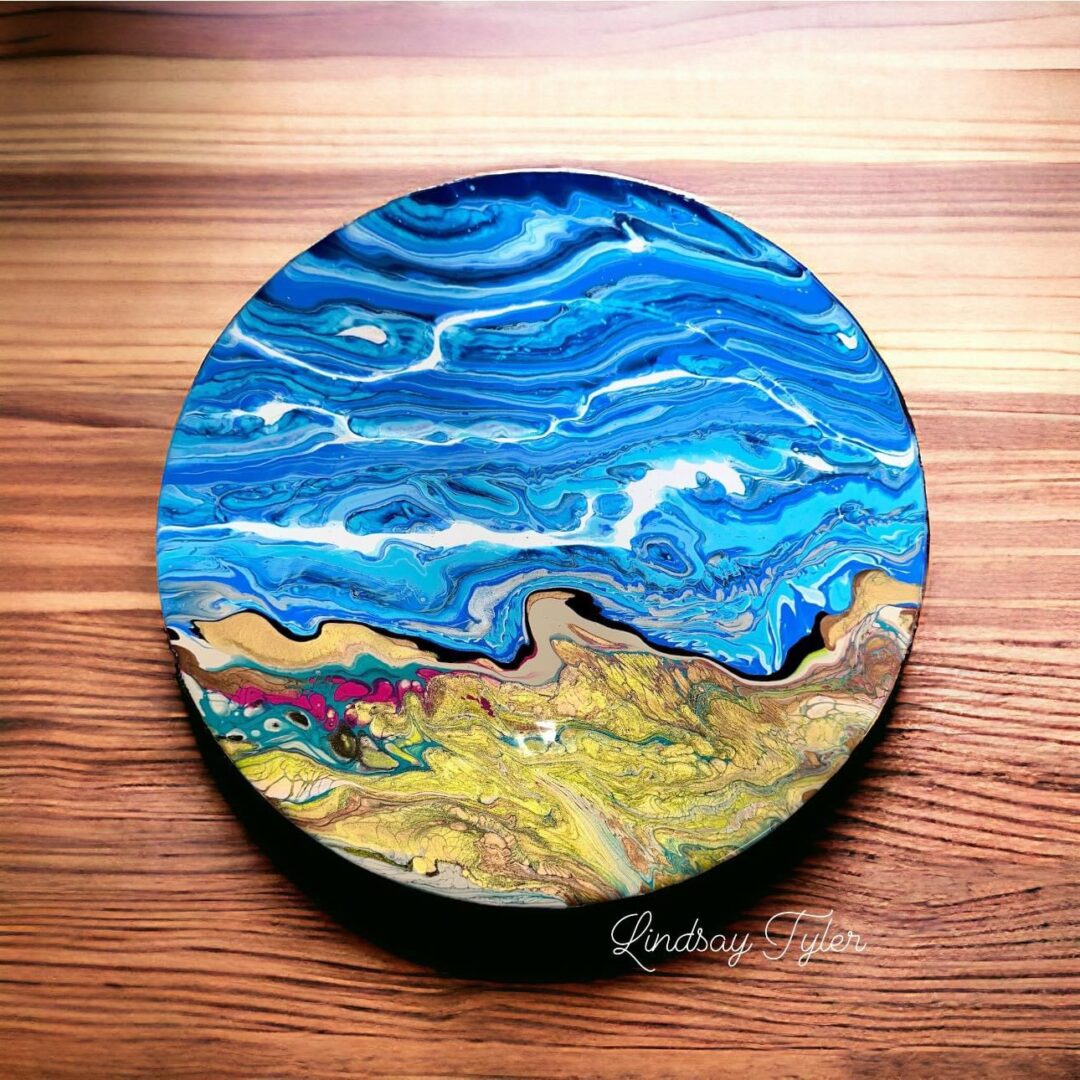 I’m a Michigan-based visual artist working primarily in acrylic and mixed media, blending fluid art techniques with traditional brushwork to explore themes of nature, memory, and emotional undercurrents. Much of my work is inspired by Michigan’s waterways, wildlife, and landmarks. I paint everything from windswept cliffs and lighthouses to fish that have slipped off the line, both literally and metaphorically. I also create bold, colorful abstract pieces that lean into emotion, movement, and layered texture.