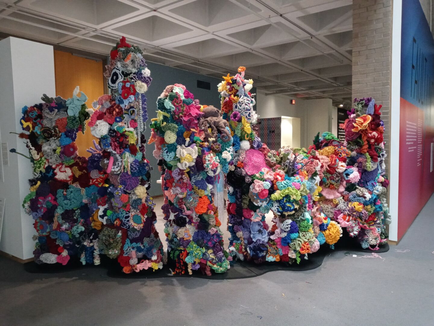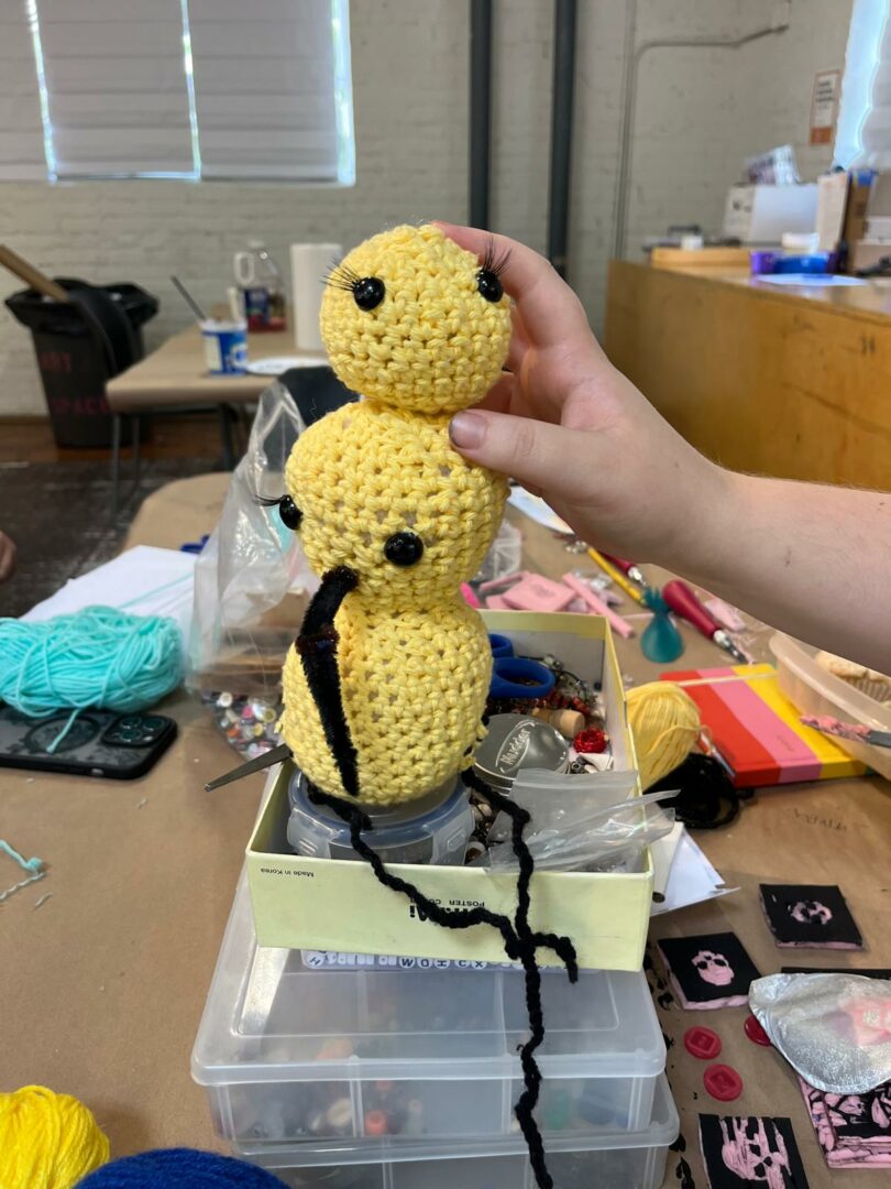 My professional focus includes several projects centered on art and the environment, including “Working on Fault Lines,” “Sea of Stitches: A Crocheted Exhibit at the NCMA,” Raleigh Arts: Nina Simon,” “Here Comes the Sun”, with Crocheted Olek, and “Love Across the USA: Crochet billboard initiative”, also with Olek. I have conducted workshops across the US for diverse groups, including children, seniors, and individuals with ADD, ADHD, and anxiety. These workshops aim to raise awareness about environmental issues, foster community connections, and demonstrate how creative activities like crochet, knitting, and art-making can contribute to overall wellness. Personally, I have found that crochet helps to calm brain activity and relax the nervous system, which in turn promotes focus, peace, and creative well-being.