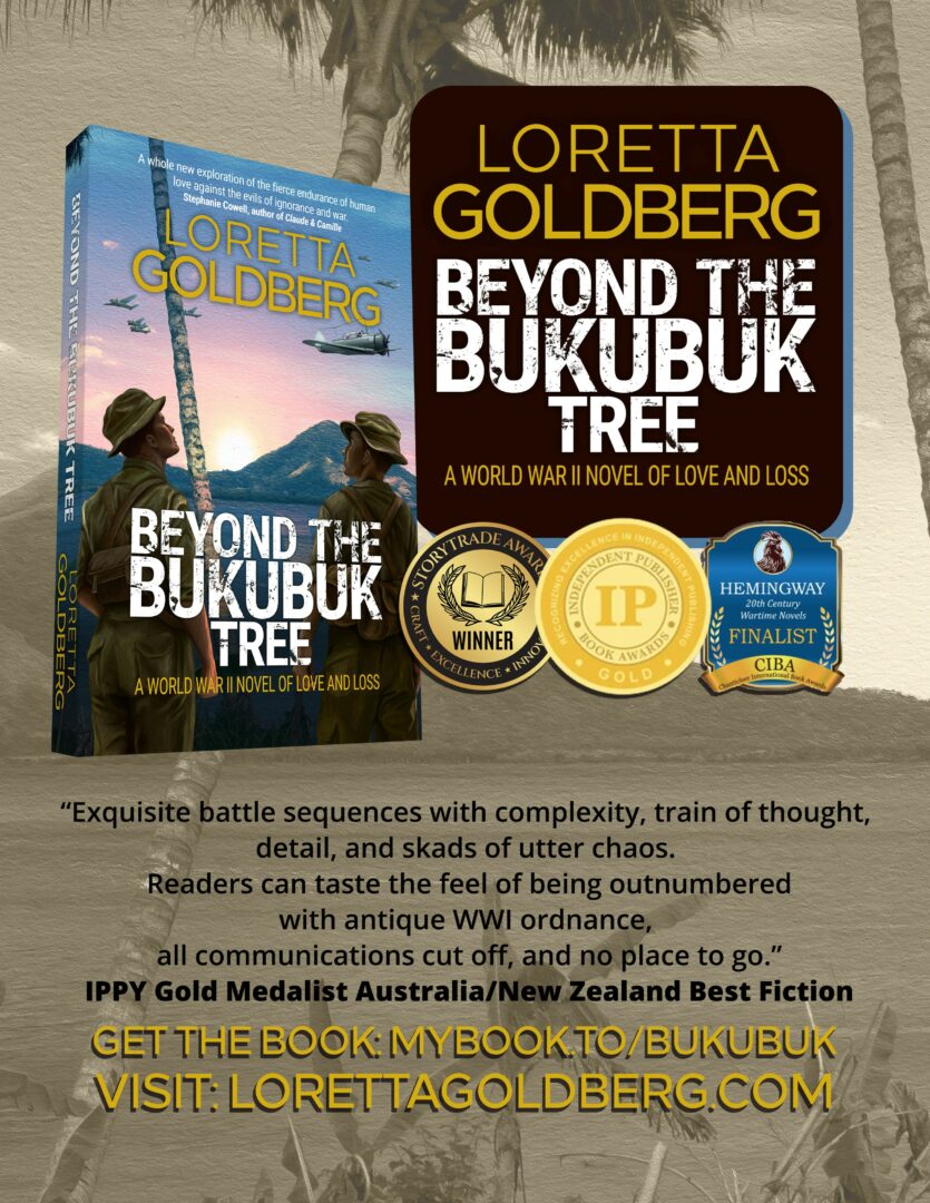 My characters are flawed strivers, often in love with the wrong person or at odds with social norms, or both, who get caught up in history’s iconic struggles and risk all to make a difference. The Reversible Mask: An Elizabethan Spy Novel is set in England, Europe and Constantinople, based on a double agent of the time. Beyond the Bukubuk Tree: A World War II Novel of Love and Loss is set in Australia and Papua New Guinea 1941-2