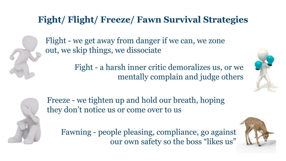When I was almost 60, I was emotionally healthy enough to leave my difficult long term relationship. I began at that time to also learn about childhood developmental trauma Complex PTSD through pioneers like Gabor Maté MD and Pete Walker. This brought my healing to a new level. I learned how the nervous system assesses threat, has a negativity bias, and about our survival responses of fight, flight, freeze and fawn. I discovered tools that break the trance of catastrophic thinking and worry. When people feel under threat, we often tighten our neck, back and gut, and we hold our breath. When we experience chronic stress and anxiety, these become habits that send a continuous signal of danger to our nervous system, even though we are safe in the present moment.