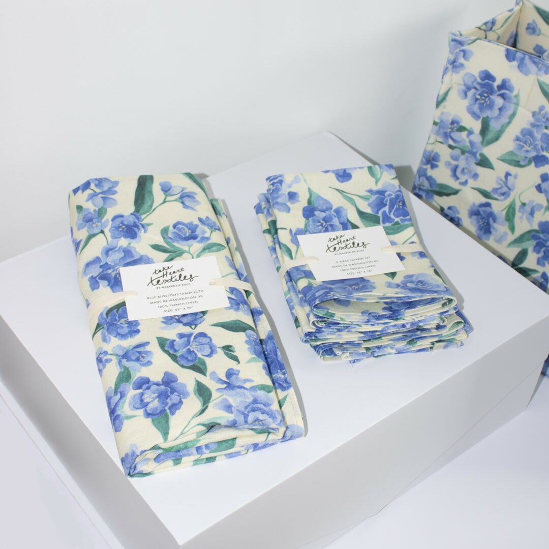In 2023, I launched my textile label Take Heart Textiles, which helps make sustainable, natural fabrics in bold prints accessible to other designers and creatives. I want to make it easy and fun for others to enjoy eco-friendly materials in their everyday lives. Under this brand, I also launched a collection of reusable gift wrap made from fabric. This line of gift wrap is made in Washington DC with organic cotton. Unlike conventional wrapping paper, the reusable gift wrap can be washed and reused over and over again. It requires zero tape and has many versatile applications beyond gift giving, such as scarves, dog bandanas, and tea towels. Launching this line of gift wrap has been a fun way to get the conversation going with others about zero-waste living and how we can utilize textiles as a force for good in the world. Alongside my textile line, I also sell my original paintings and prints of the artwork. I really enjoy getting to connect with others about the work and what inspires me as an artist. I am continuing to develop fabric designs sold by the yard to make sourcing fun and eco-friendly fabrics easy for other designers and makers. My focus is currently on expanding my portfolio, developing new fabric and gift wrap designs, and getting my products stocked in stores to help reach a wider audience.