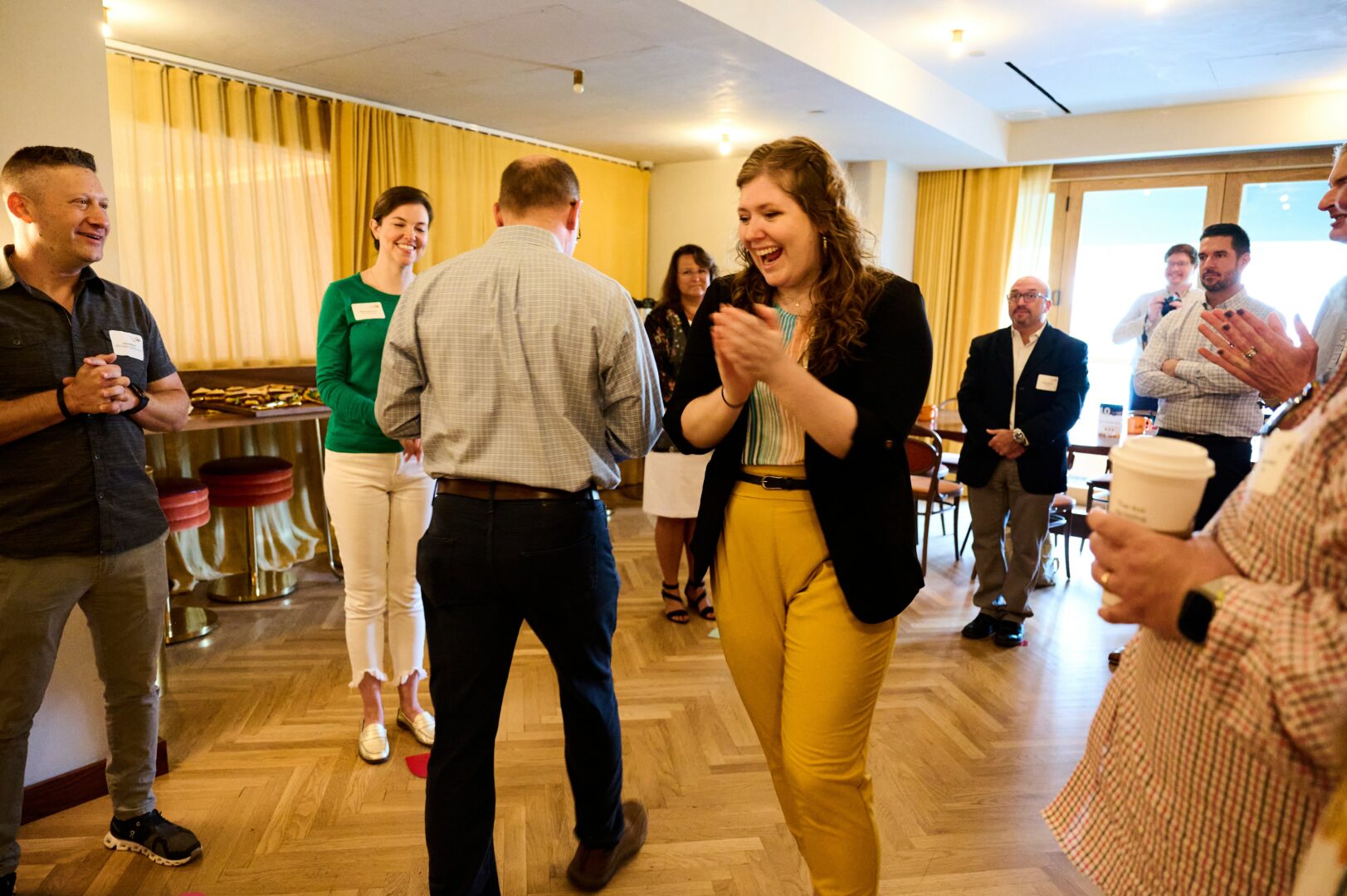 Corporate Workshop (Yellow pants photo) is Darryl Bradshaw