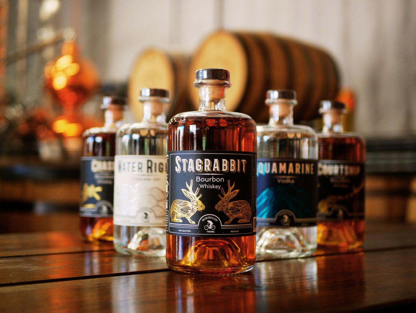 We are currently producing and self distributing our three flagship spirits; StagRabbit, a blended bourbon, Water Rights, a botanical gin, and Aquamarine a double filtered vodka. We get our grains from the San Luis Valley and donate a portion of all bottle sales back to a local non-profit. From its origin we wanted to build a company that lifted up this local economy and participated in environmentally consciouses practices. We are the only distillery in the state of CO to be recognized as a gold level Colorado Green Business Network, and two out of three of our products have received medals in an international spirit competition put on by the ADI (American Distilling Institute).