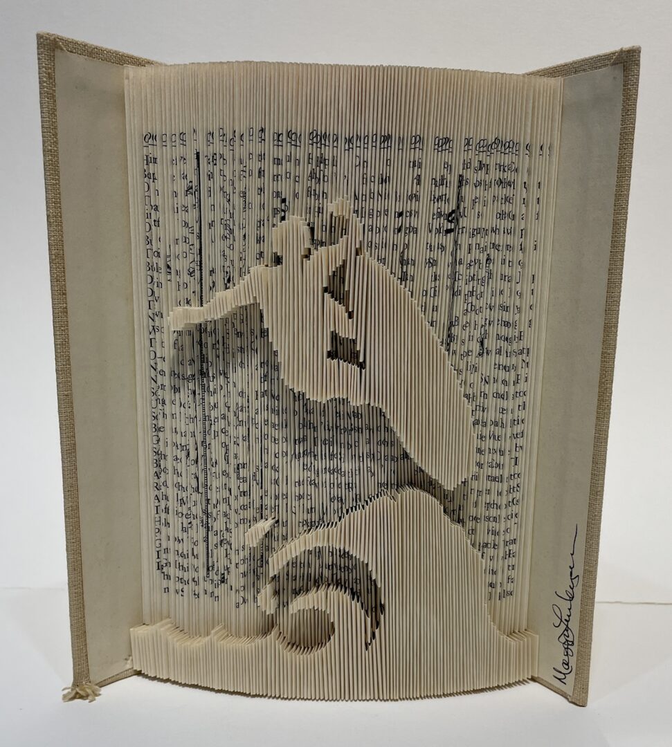 I transform books into sculptures and other works of art. While a story can take the reader on a journey of the mind, I would like to hope that my art takes the viewer on a journey as well.