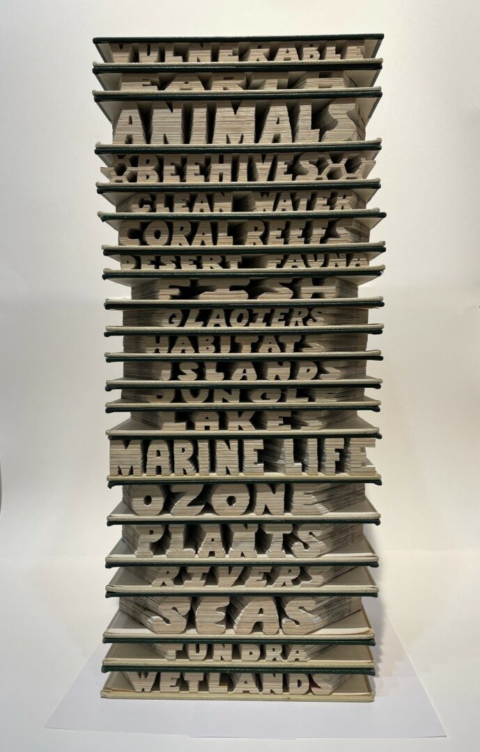 People routinely walk into my studio and look at my artwork with initial confusion. That gradually lifts as they realize that the artworks are actually made from books and paper. That moment, when their expressions turn from boredom to amazement, will never get old for me. My purpose is to delight, and excite, and inform, and challenge. It’s truly a compulsion.