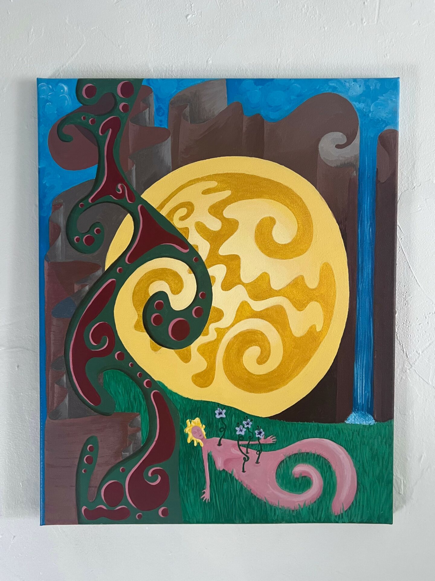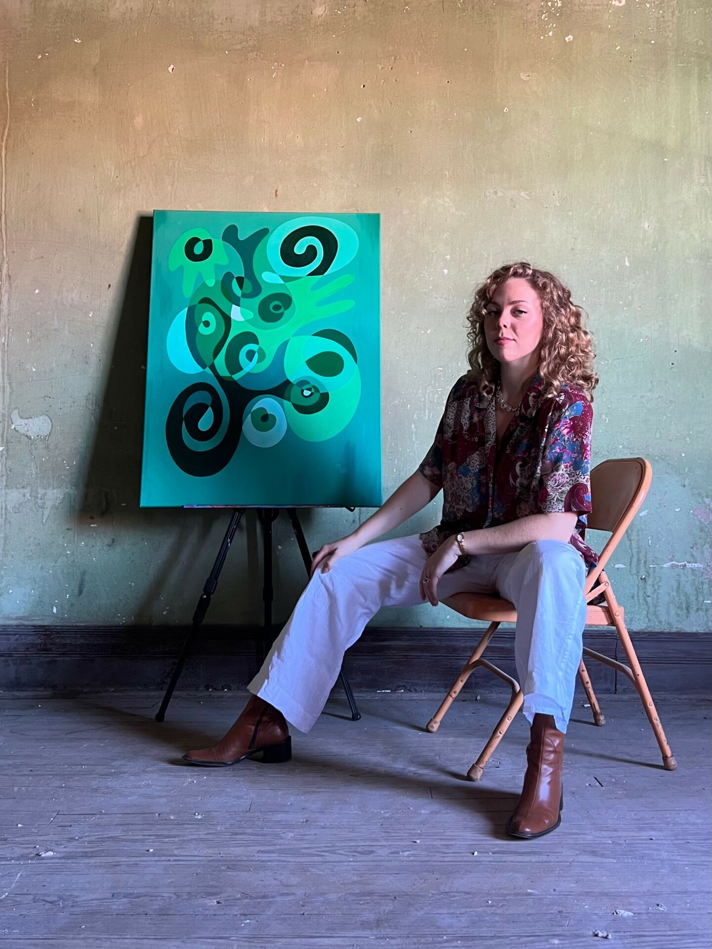 I come from two long lines of artists. Each of their own craft, but artists none the less. If I had to credit me resilience to once source, I would say it’s from my ancestors. When I feel uninspired or unimportant, I’ll talk to them and ask them for the motivation to do something. Whether it’s showing up for an art piece, or sweeping my house. I ask, they help. Sometimes it’s an unseen energy, sometimes it’s calling my mom for a pep talk. I’ve also read many artistic inspiration books over the years like The Artist’s Way by Julia Cameron or Big Magic by Elizabeth Gilbert. An idea that has stuck with me and motivated me is that I am not where the work comes from, I’m where it comes through. The art is a living entity of its own that wants to be created. By showing up on the canvas every day, even when my inner critic says I suck or it doesn’t matter, I am showing art that I am a reliable source, through which it can be brought to life. By removing myself from the greatness, I remove the pressure to be great. I hold myself responsible for the time I put into things, not for the quality of the idea. This removes my ego from my work, and gives me power in the areas that are within my control and thus, the resilience to show up and know that that alone is enough.