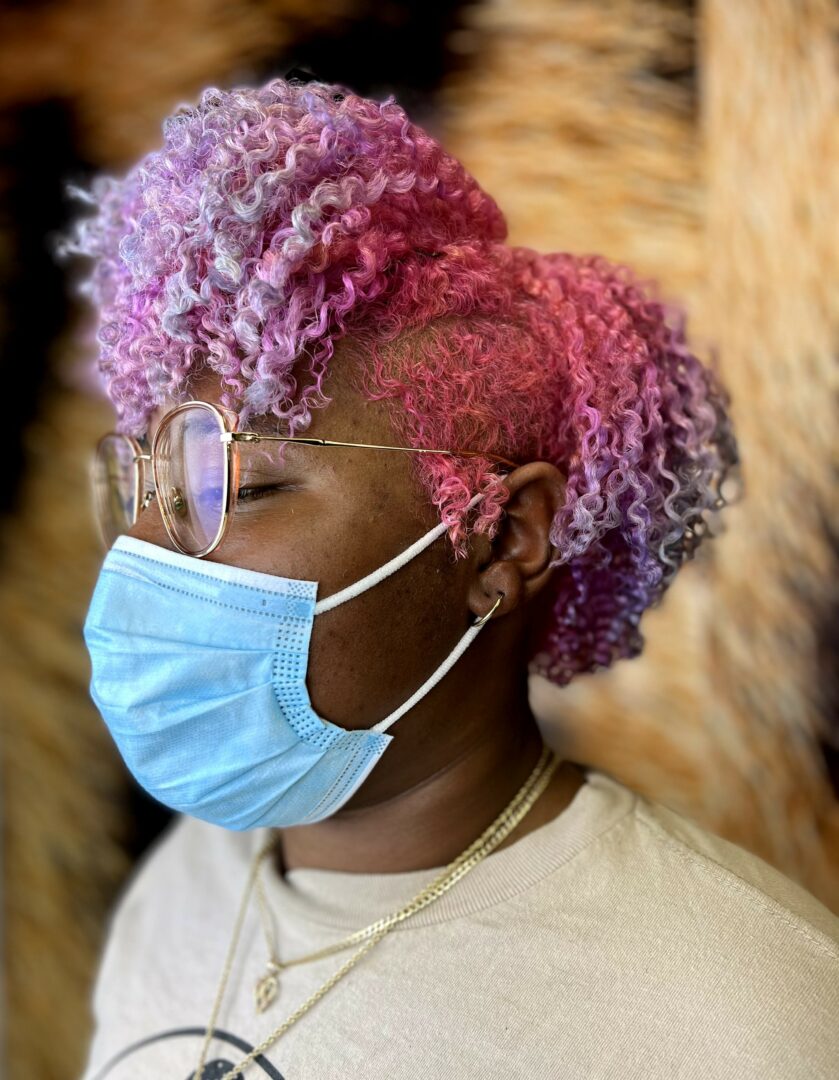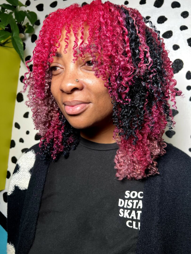 Along this journey I spent time thinking about who was historically left out of the average salon space. My vision came to life- We are here to service folks with curls and textured hair, queer and trans people who need gender affirming services, disabled people who may need accommodations to make their hair appointment accessible, and people living in larger bodies that can not fit the typical salon furniture comfortably. When I spun my vision i had coworkers laugh at me and mock me, but the right stylists found our mission statement and jumped on board. We’re lucky to have been in business 4 years now and are fully staffed with 7 talented stylists offering a range of services from curly cuts, color, locs, braids, silk presses, relaxers, barber cuts, extensions, and so much more.