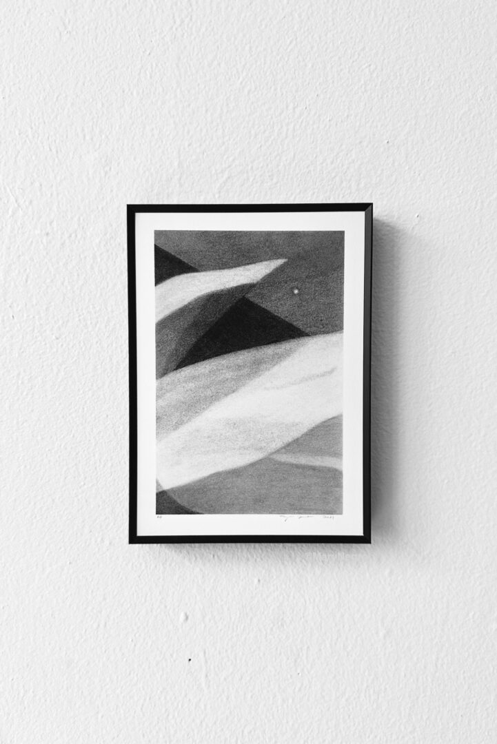 I am a visual artist. Years ago I made mostly mixed media collage, but for now my studio practicalities are dictating my focus, and I’m okay with that actually. I prefer to work within limitations or a small number of variables. At the moment I make abstract pencil drawings that for me often evoke landscapes or events in nature. None of my drawings depict a specific place, thing, season, or event. Instead they are open-ended and ambiguous. I’m more interested in developing mood and a dynamic composition than in rendering actual places and objects. Usually when I work I’m thinking about the future, sorting out how I feel about current events, trying to learn a new subject (through podcasts and YouTube mostly) or I’m just trying to empty my brain and ideally not think at all really. I think my drawings reflect this mental space, where I’m sorting through a lot of unknowns and attempting to make sense of numerous, new, or conflicting ideas. I don’t have a predetermined image in mind when I start a piece, just as I don’t know how the events and circumstances I live within will evolve or conclude. But I really enjoy the physical process and the mental exercise of figuring out when a drawing is finished. Overtime I’ve noticed that this typically happens once portions of the drawing feel more like physical light as opposed to paper; when there is a sense of movement or stillness; and when the imagery feels rooted to me in a gravitational way—there’s a sense of the drawing settling toward, or grounded by, the bottom of the paper.