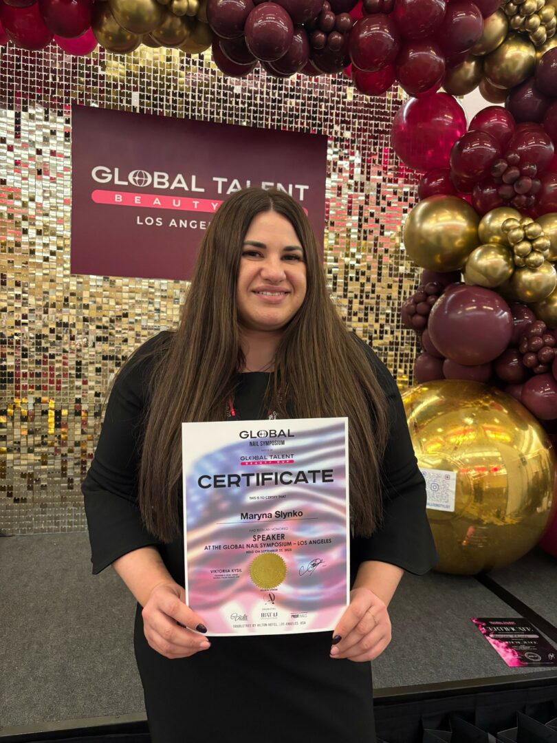 In addition, I participate in international nail championships and judging, representing both Ukraine and the United States on the international stage, and promoting the standards of safe and high-quality manicure.