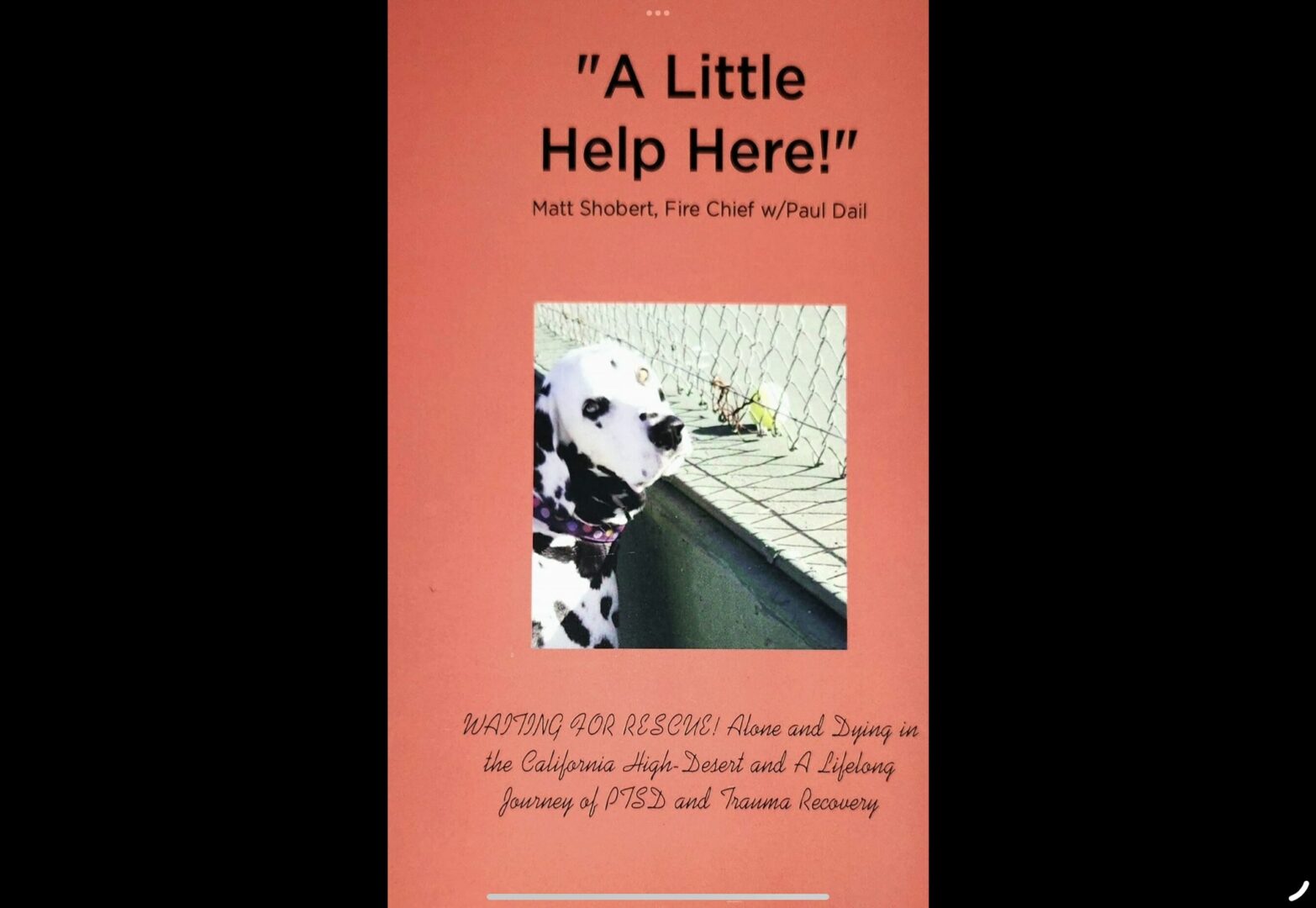 <b><i>A Little Help Here!: WAITING FOR RESCUE! Alone and Dying in the California High-Desert and A Lifelong Journey of PTSD and Trauma Recovery</i></b> <i>- is the inspirational and harrowing memoir from debut author, and former celebrated fire chief, Matthew Shobert, which follows his transformative journey of recovery after a near-fatal accident which resulted in brain damage, extensive surgeries, and crippling PTSD.