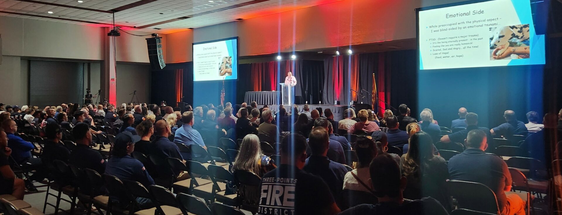 Substance Abuse, and Spousal Abuse – would still come into play. An eventual 7-day stay at a Southern AZ, Combat Veteran’s PTSD Camp, with 18-months rigorous follow-up, would point me in a positive direction. I was the first, first-responder accepted into this program. Ten years later – since my injury, I am contented. I have a good marriage, and life is good. Now, I have decided It is time to share, pay-it-foward, and give-back. For the past three years I have traveled the country, with my wife and service dog, speaking at conferences and fire stations to share my story of recovery, perseverance and success, with the ultimate goal of saving one firefighters life!