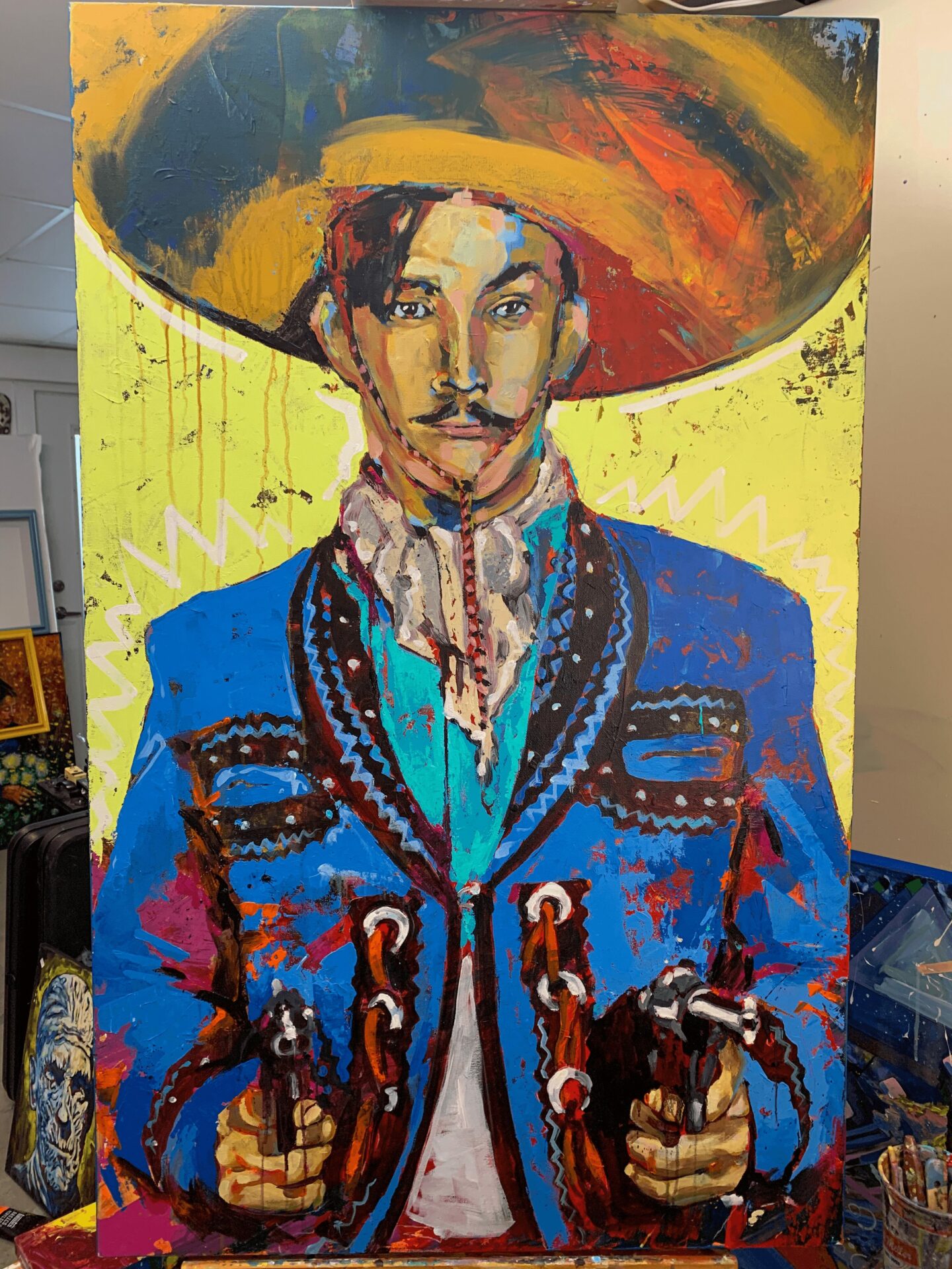 Since then, I have been creating paintings in the styles of fauvism, expressionism, realism and abstract. At the beginning of my career I was painting iconic figures of the Mexican Revolution and the Golden Age of Cinema. Lately, I have been focusing on creating more abstract paintings while composing my own experimental music. One of my goals for the near future is to have an exhibition where my music and visual art can complement each other.