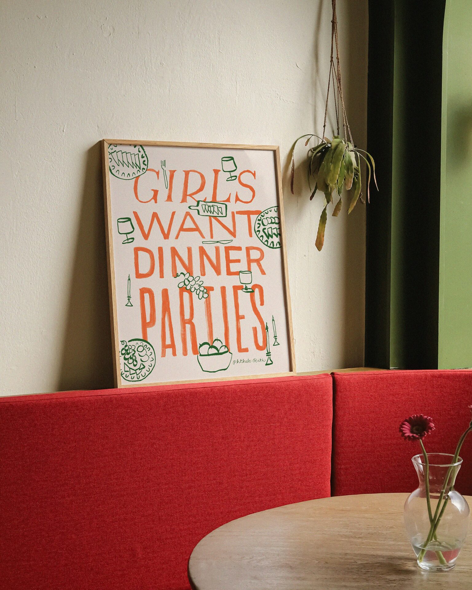 This was our first art print and our first instagram post. Our account grew very organically from there. I started taking on commission and collaboration requests and eventually was able to quit my job. One year later, I launched my “Girls Want Dinner Parties” series and things really took off. Around that time, my husband, Emerson, with a background in art direction, joined me in building the brand. Together, we have created a brand that is all about celebrating life’s little luxuries and manifesting more moments of everyday bliss.