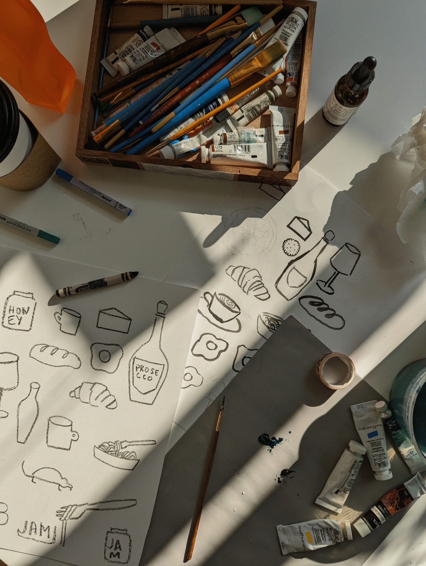Phthalo Ruth was founded in 2022 when I was looking for a side hustle while working my full-time job at a stationery company. After a 2 year hiatus from making art, I was finally ready to rekindle my passion and get in touch with why I used to love creating so much in the first place. I picked up some crayons, and started sketching some of my favorite things: a croissant, a bottle of prosecco, a baguette, a coffee mug… The simple drawing brought me so much joy to create and to look at. I felt a sense of play and freedom that I had been very disconnected from for years.