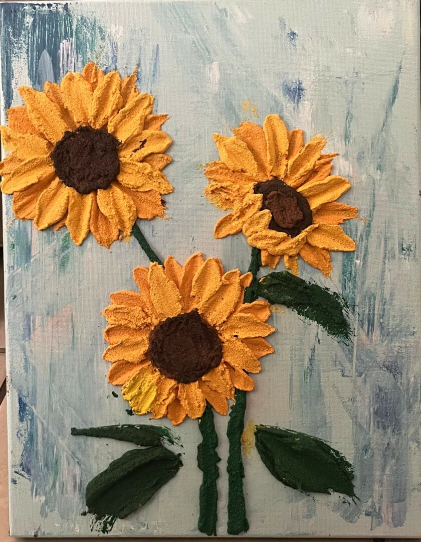 Besides designing characters, I also love making sunflower art. I go crazy for sunflowers, and I love everything about them. I try to use every medium to make sunflower art, ranging from color pencils to acrylic painting. Of course, I also make other small art to explore new techniques, but I tend to focus on making art based on the sunflower theme.