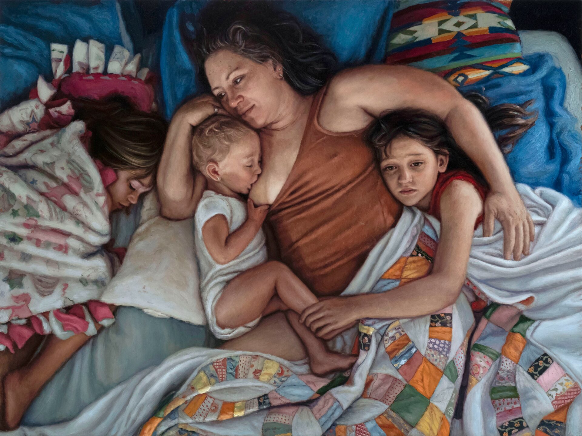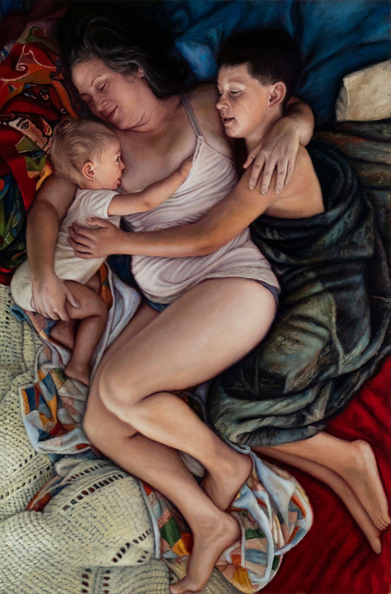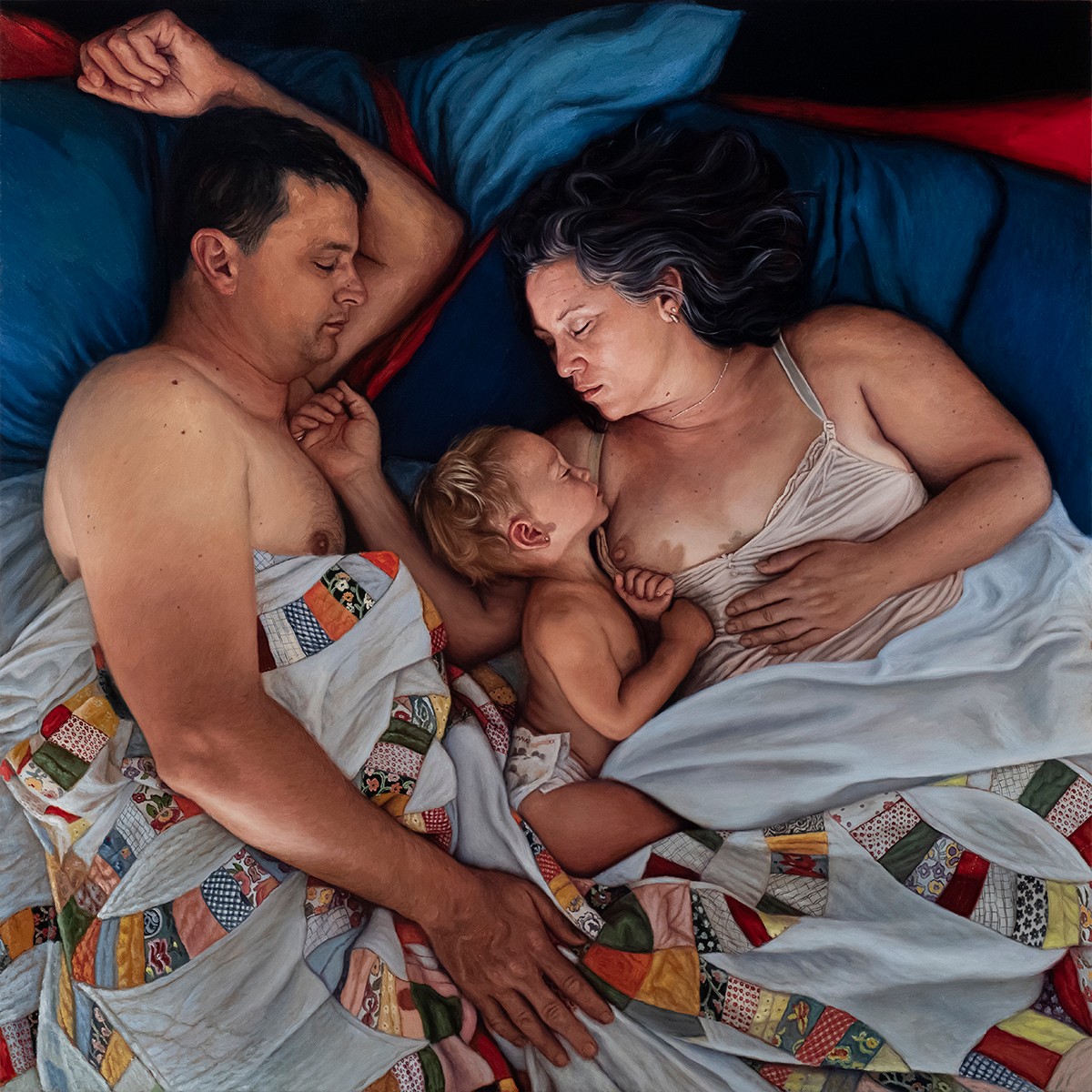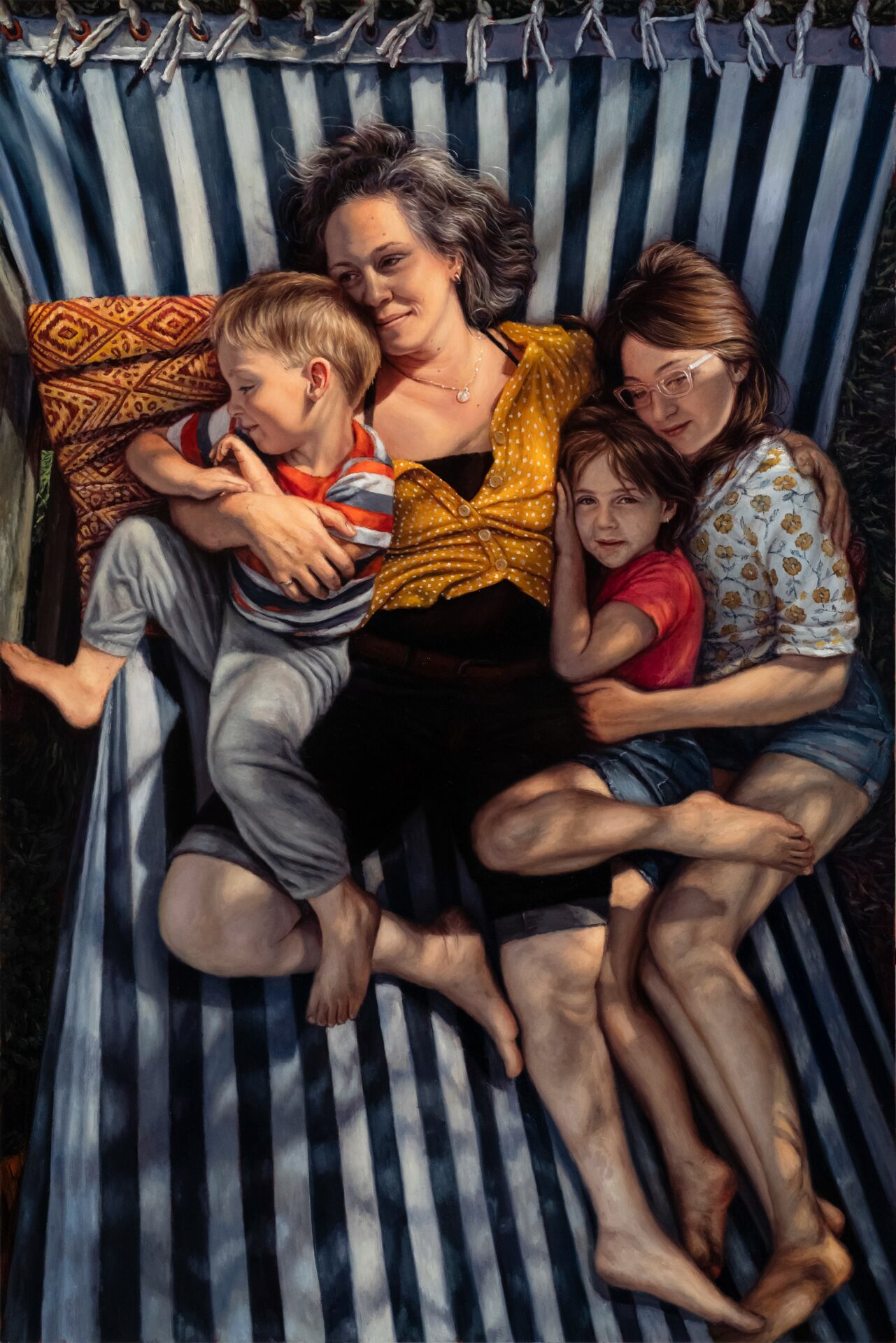 My work is inspired by intimate moments of frozen time. They are the stories of real families and loved ones, most of whom I personally know. Sometimes I am commissioned by strangers who then become close friends through the process. As these relationships unfold, I am gifted with special access to the intimate details of these special everyday lives. I document those moments and use those images to create compositions that reflect my connection. In a sense, I am living vicariously. When I’m painting these special moments, I am sometimes the mother, and I am sometimes the child as much as I am the observer. In these composed worlds of intimacy and tenderness, my purpose is to capture the fleeting, bittersweet moments that we all aspire towards, desperately try to hold on to and sometimes take for granted.