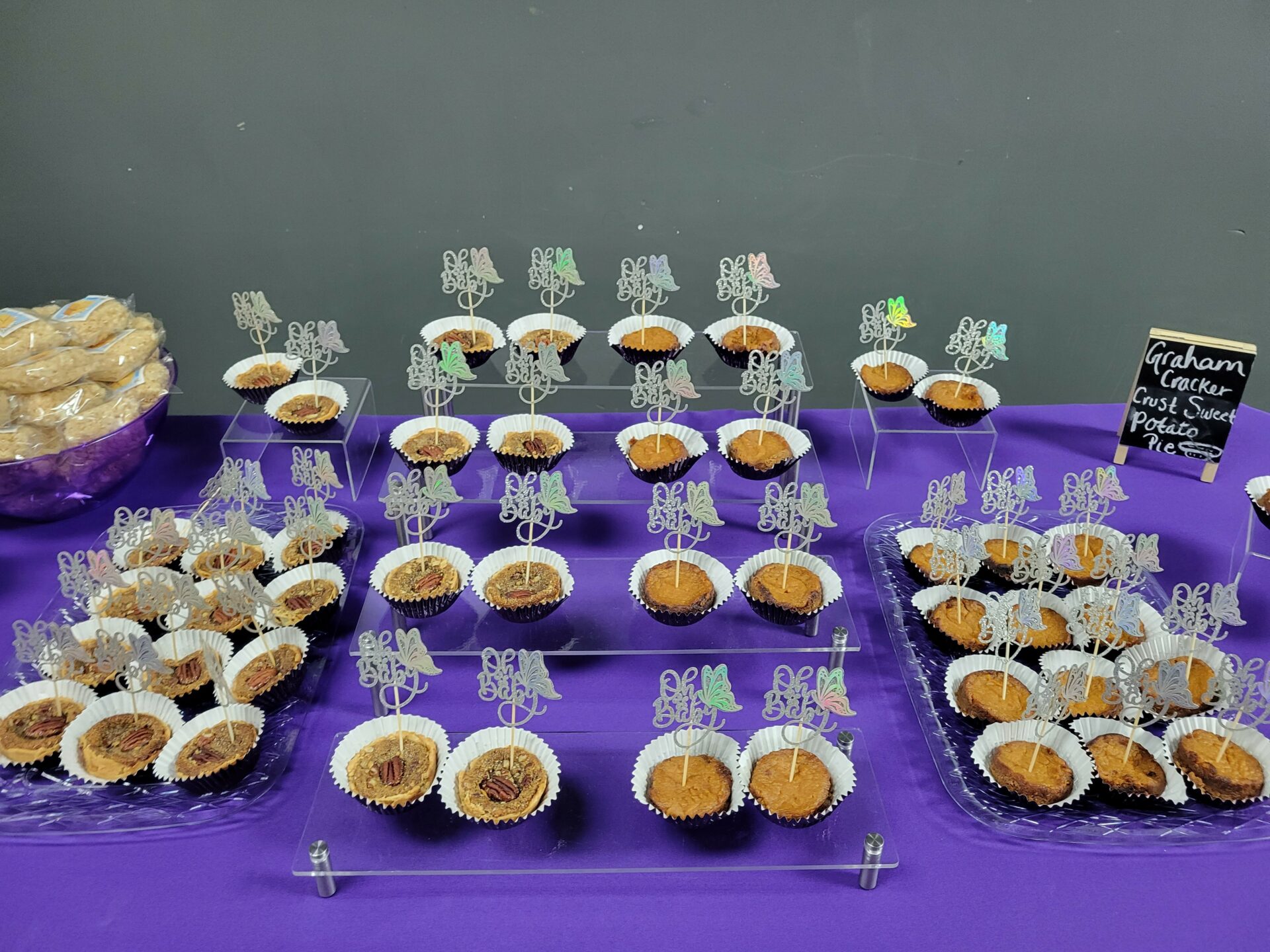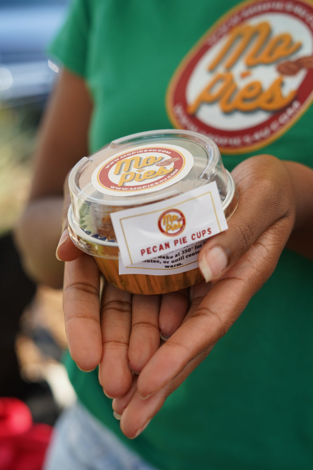 I’m the owner of a pie baking business called Mo Pies. I bake pecan pie, sweet potato pie, and a graham cracker crust sweet potato pie. I offer 3 different sizes. Mo Pies are the original 9 inch size pies. Mo Cups are cupcake size pies which are for sharing. My Mo Bites are a vegan bite size candy pecan pie. There’s none other like it. Last year I added Rice Krispy treats called Mo Treats to the menu. I offer pickup and shipping.
