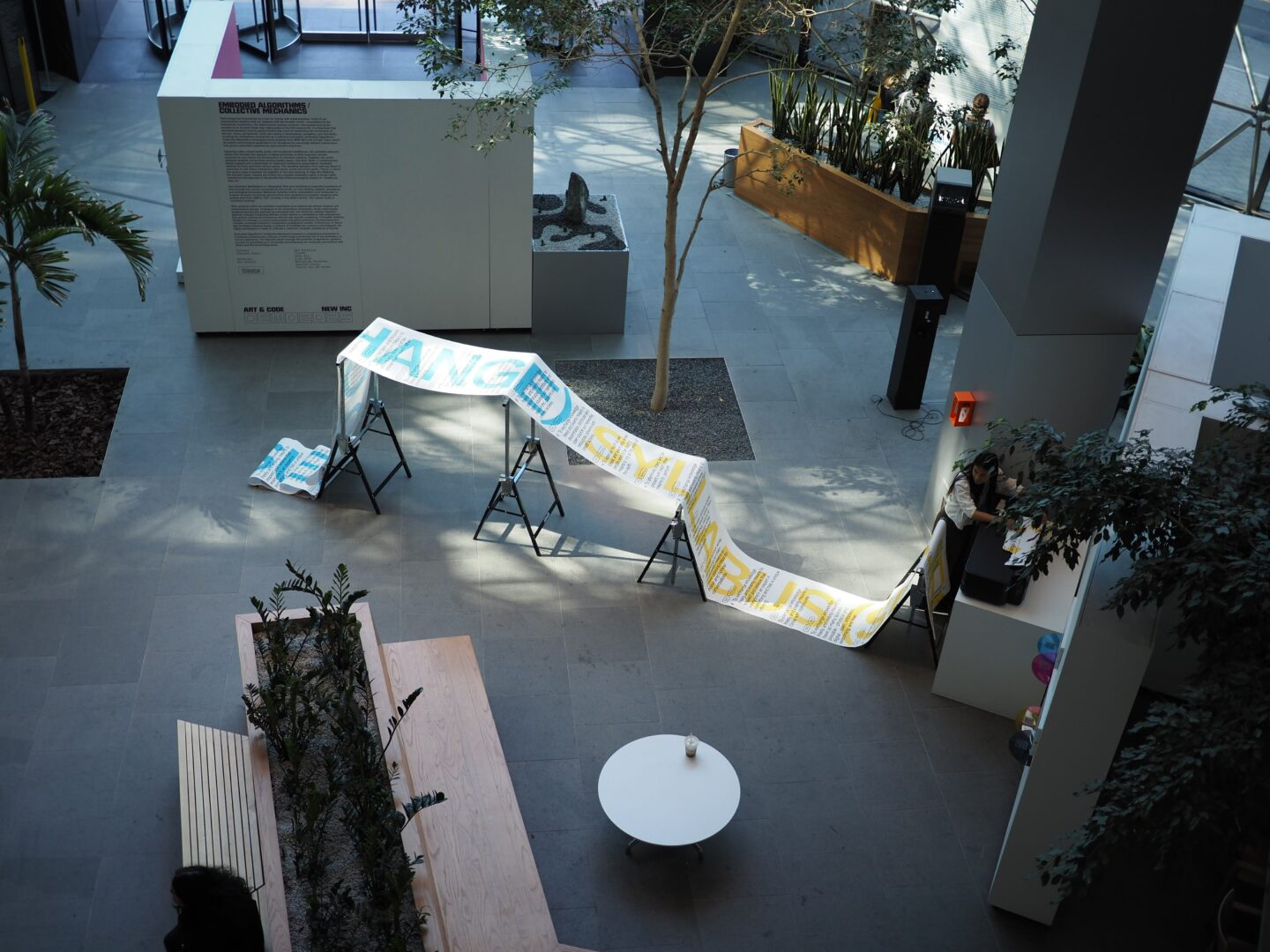 The same pedagogical ideas I bring into the classroom can also translate into installations and exhibitions. One example is Syllabus (Subject to Change), an interactive work where participants are invited to imagine the kinds of learning communities they want to build. Their responses are printed onto a continuous roll of paper, turning the syllabus into a living document that is collective, shifting, and never finished. I co-created the project together with designer and educator Nikki Makagiansar, and we invited our friends, production designer Franco Chen and poet Em DeVincentis, whose contributions made the piece much richer and more expansive.