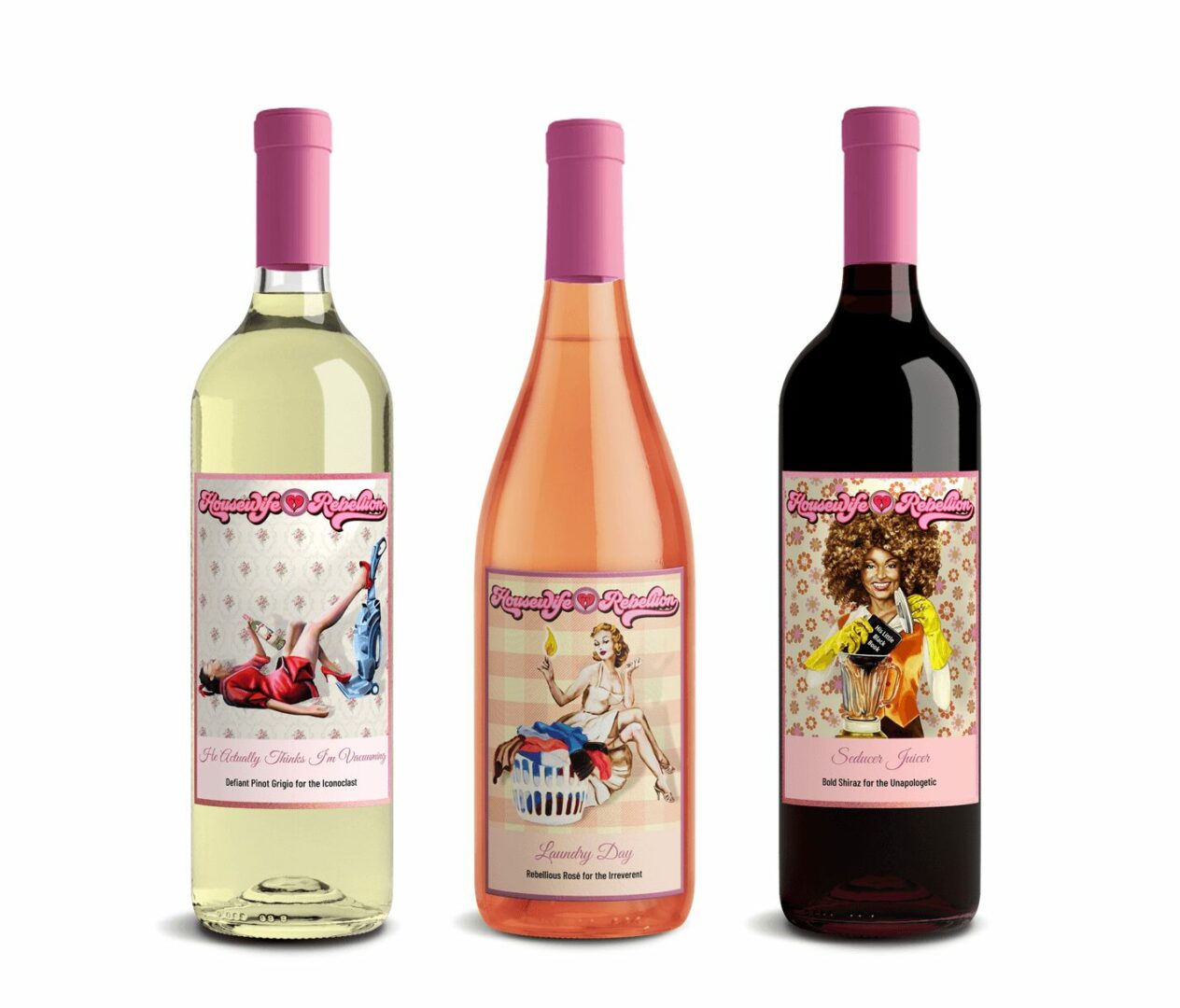 The thing that excites me the most is that the wine is getting the artwork into the hands of more people, and it’s sparking conversation along the way. The wine labels were created from my art and depict proper housewives engaged in rebellious behavior.