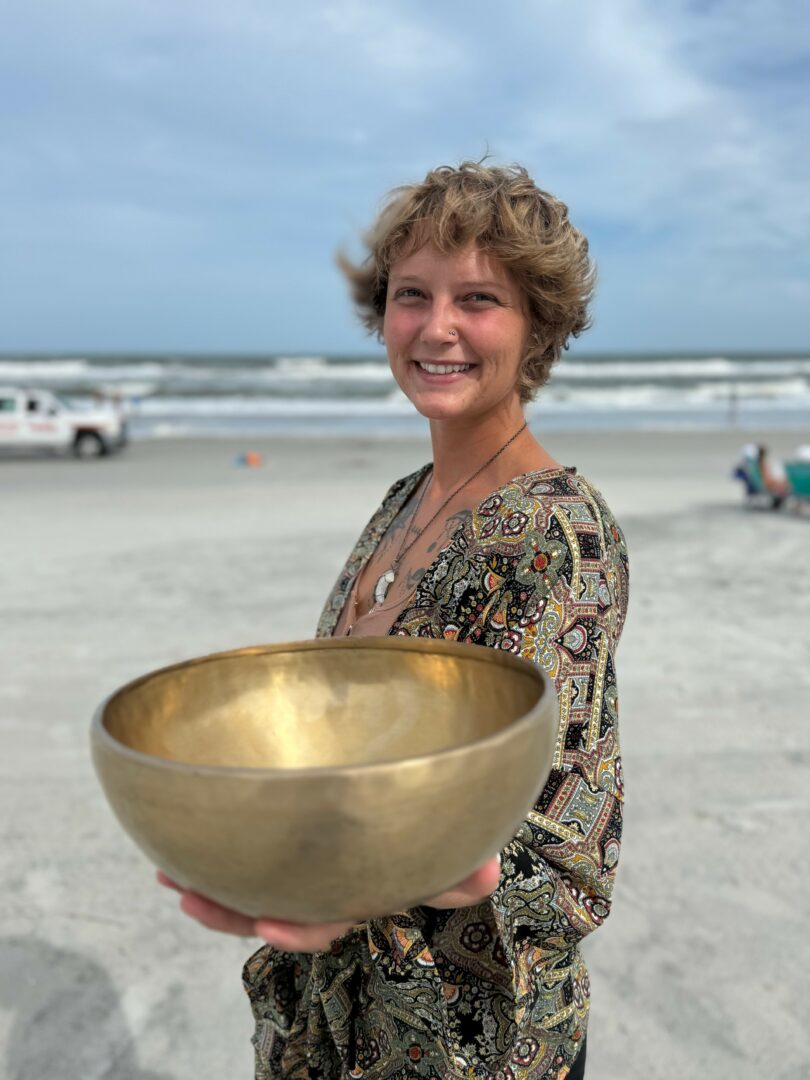 I host Friday Frequencies every Friday, my weekly beach sound baths that bring together community, nature, and pure high vibes. The sound of the waves mixed with the tones of the bowls is truly something special. I also hold monthly Full Moon Sound Baths on the beach, which are some of my favorite gatherings of the month. Both are donation-based events, open to anyone (including kiddos and furry friends) who feels called to join.