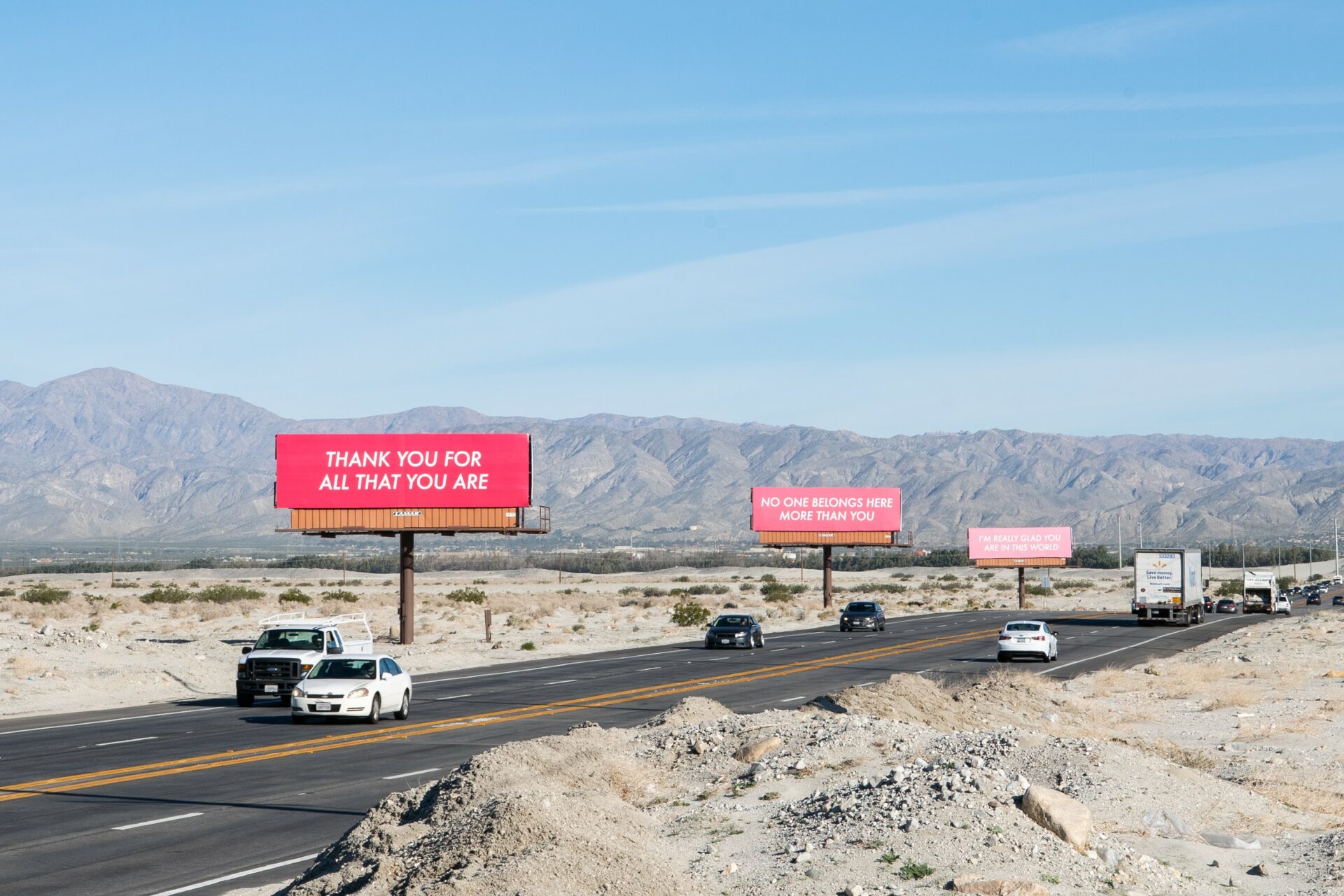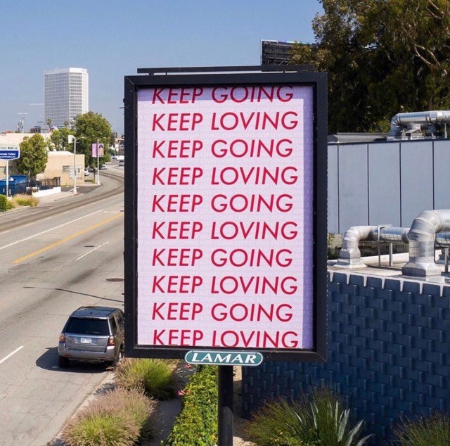 I have posted over 600 anonymous affirmation billboards so far, in addition to hundreds of other tangible integrations of visual compassion. This work has been experienced by over 100 million people world-wide and was awarded a life-time achievement OBIE award in 2020.