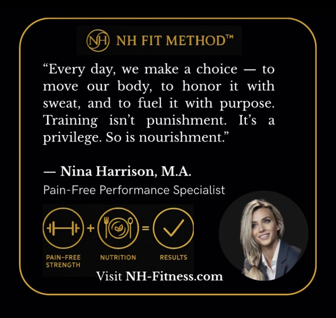 That mindset became the foundation of the NH Fit Method™ — a holistic approach to health built on pain-free strength, smart nutrition, and measurable results.